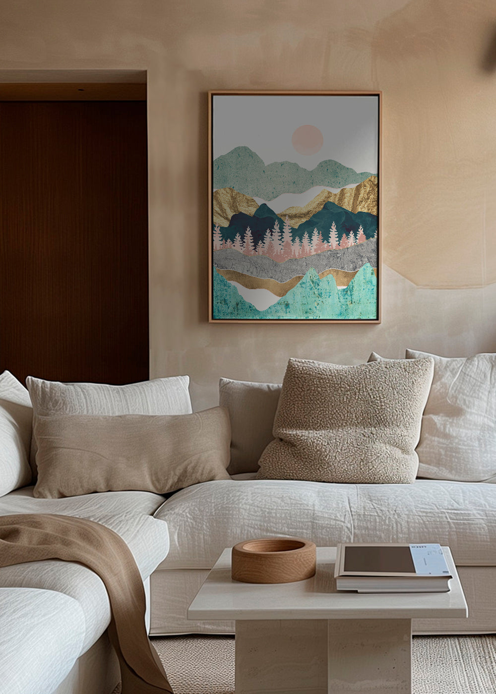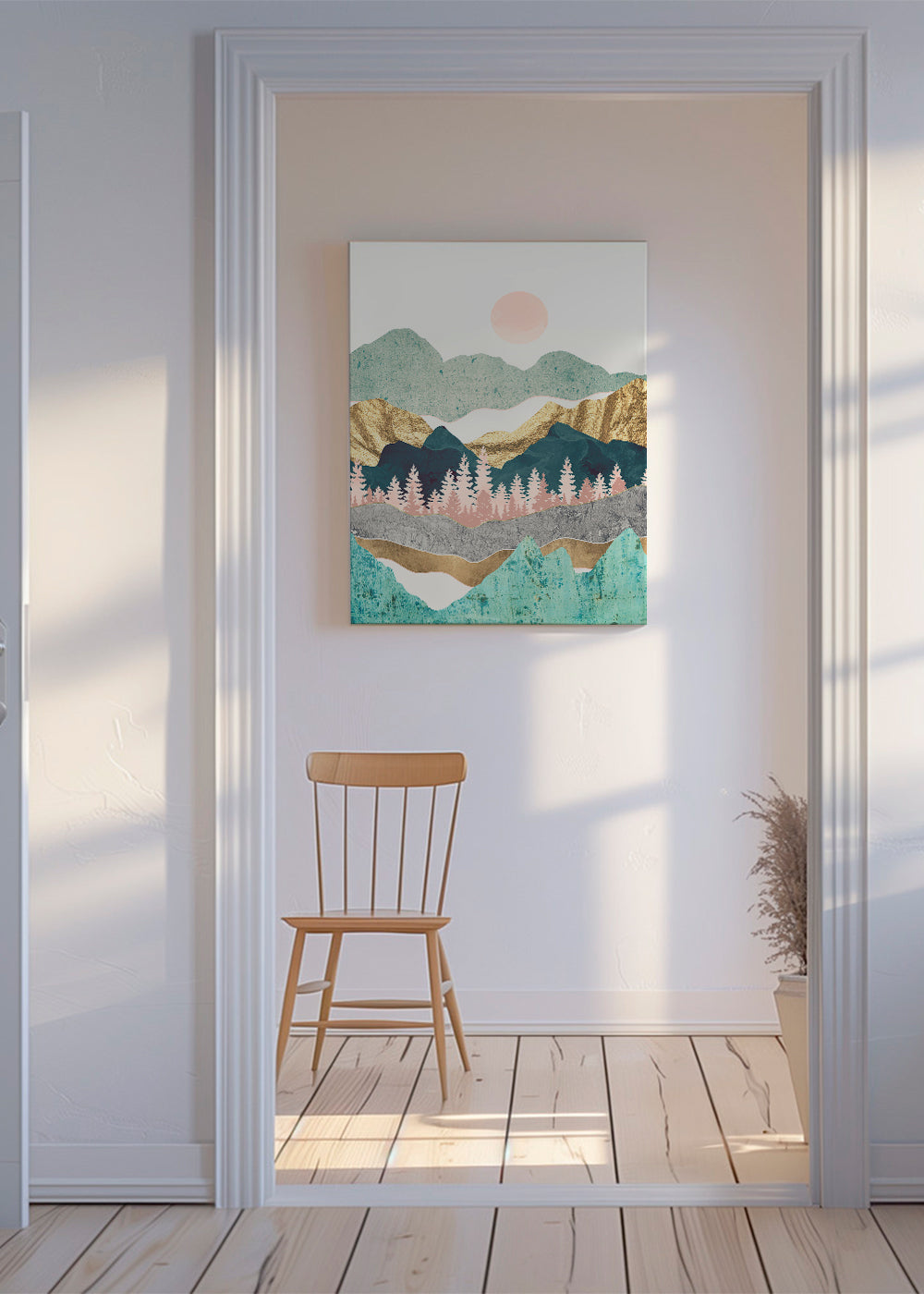 Each canvas is hand-stretched over a wooden frame. The depth is 3 cm for unframed canvases and 4 cm for framed canvases.