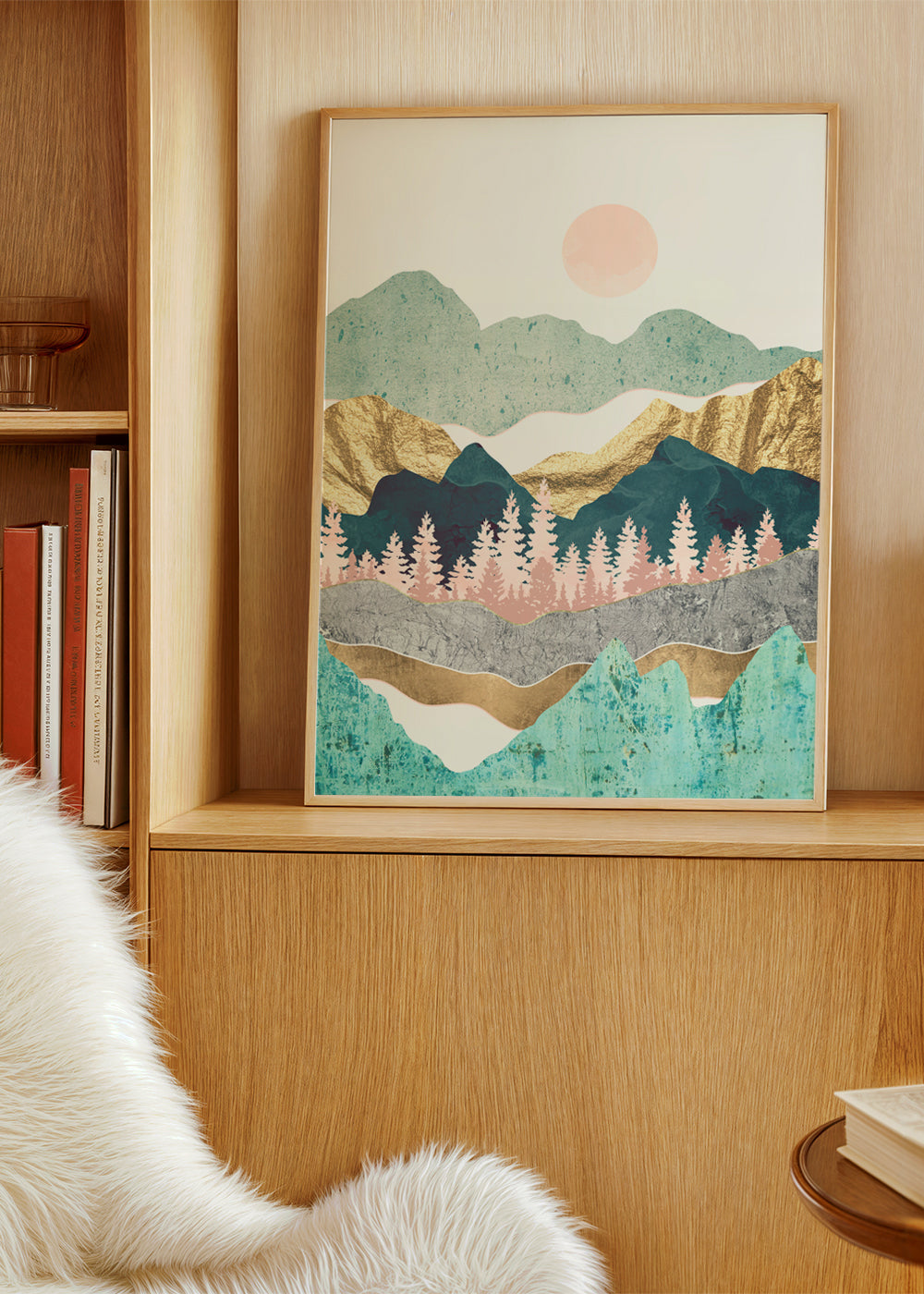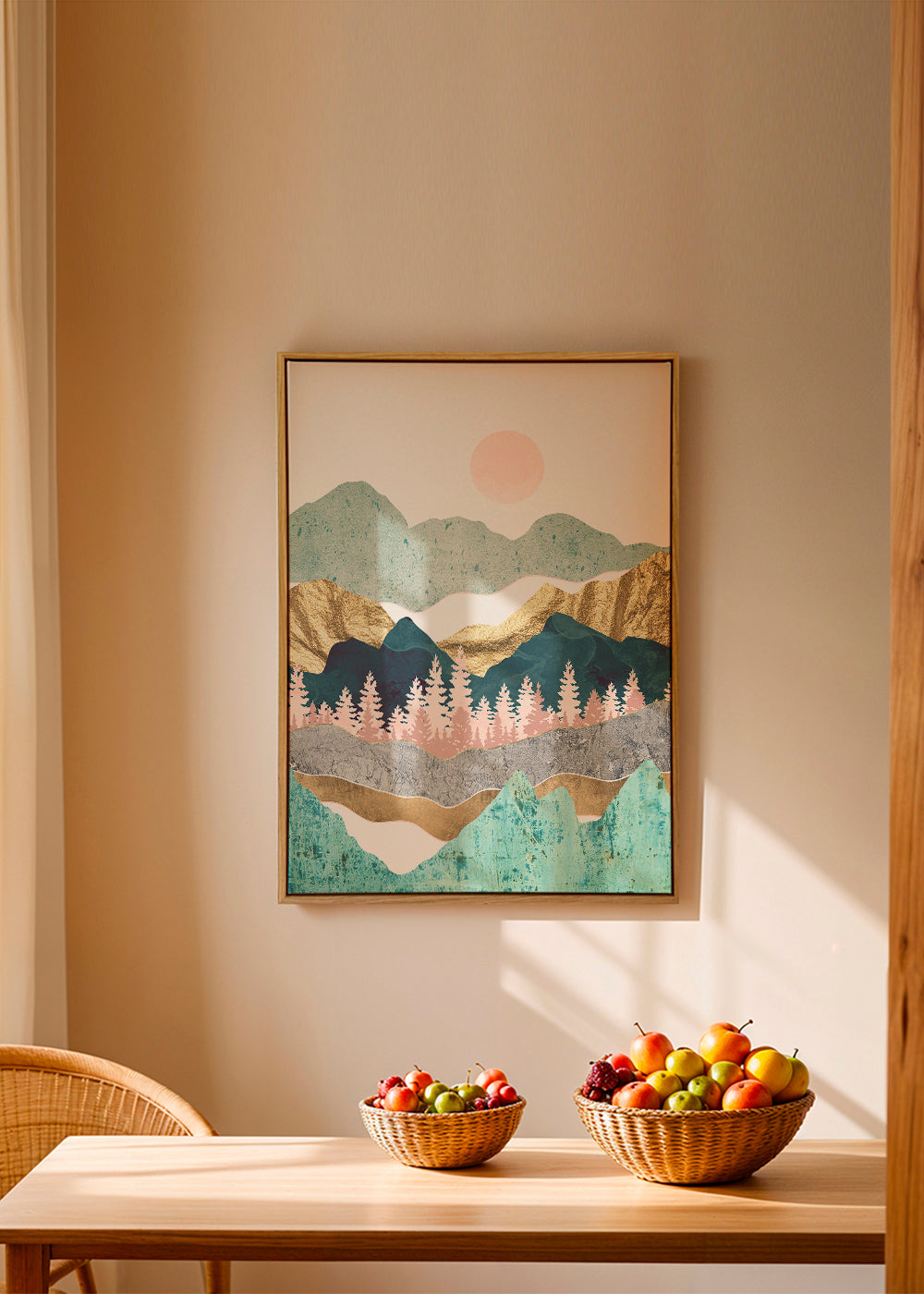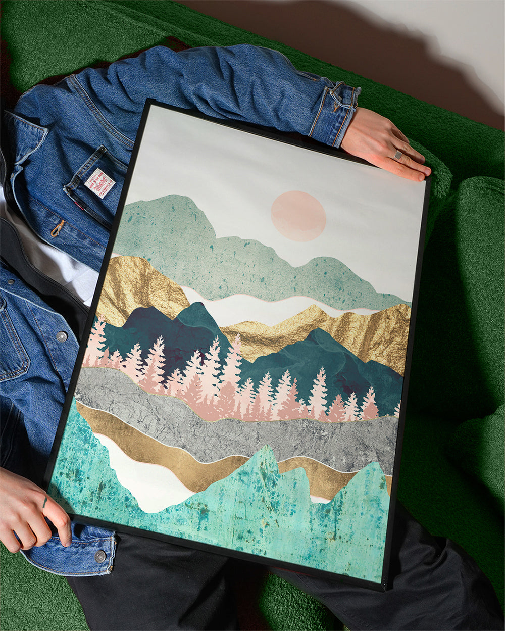 A poster from our landscape wall art collection, by SpaceFrog Designs, with tones of green, and in vertical position. The tranquillity and freedom of landscape prints is one of a kind. Elegance inspired by art.