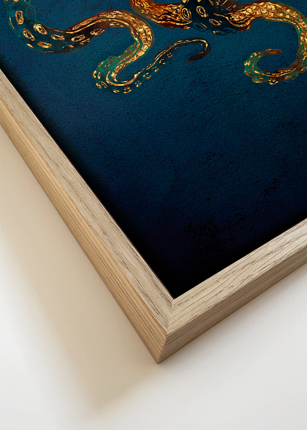 The wooden frames up to 20x28 in (included) have a width of 0.6 in and a depth of 1.2 in, while in the larger ones the width is 0.8 in and a depth of 1.2 in.