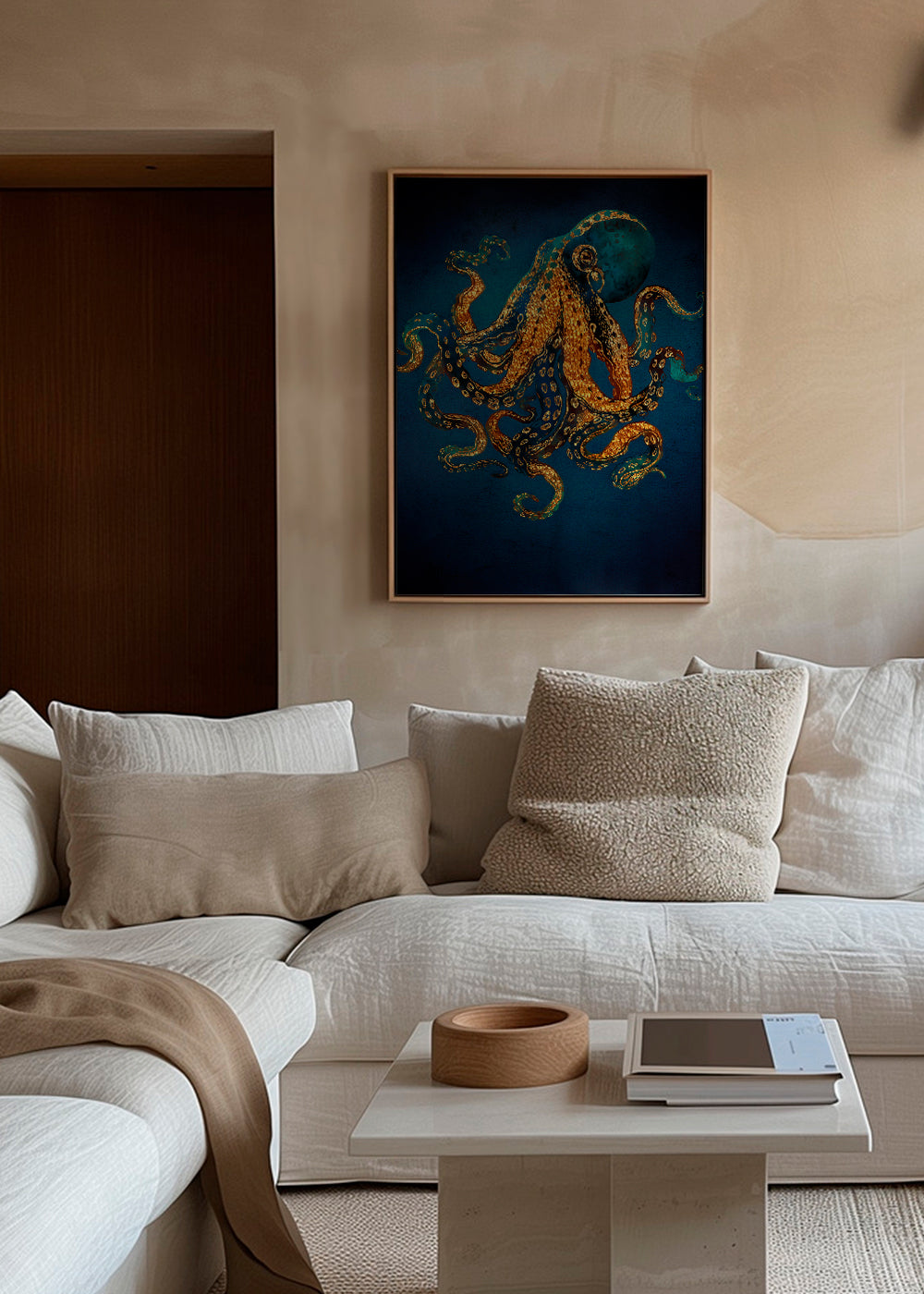 Beautiful print from our animal wall art category, an original by SpaceFrog Designs, with blue, and facing vertically. A beautiful landscape perfect for pairing with other nature prints. Elegance inspired by art.