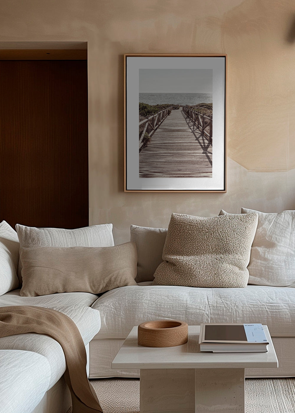 Beautiful piece inspired by the collection of beach wall art, in tones of brown, and to hang in vertical position. This design is perfect for spaces that convey calmness. Pair it with other relaxing prints for mindful decoration. Your home decor is in your hands. This piece includes a white strip framing the design to boost its style.
