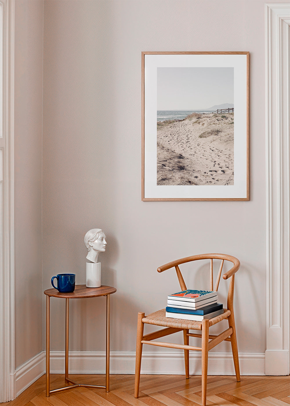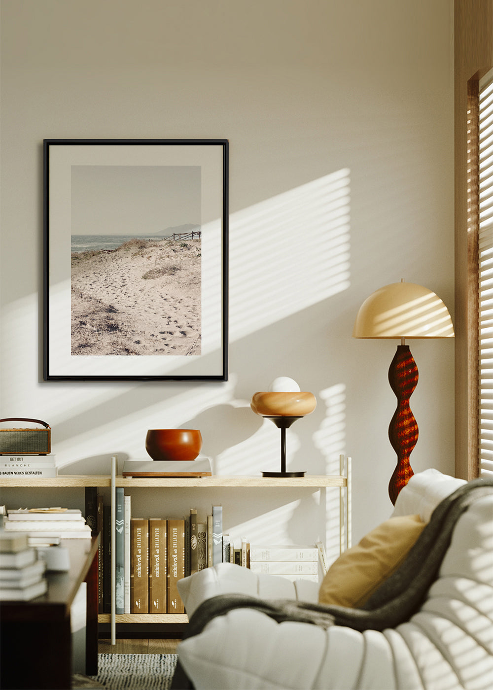 A design from the beach wall art series, with brown pigments, and perfect to hang vertically. This piece will relax you straight away. Relaxing posters are perfect for anywhere in the home. Fill your walls with art. The white strip around the piece enhances its expressiveness.