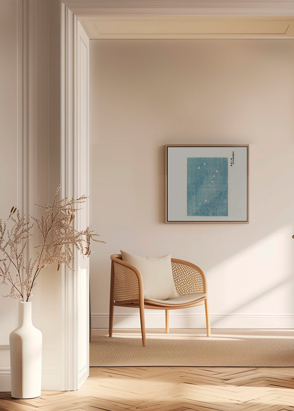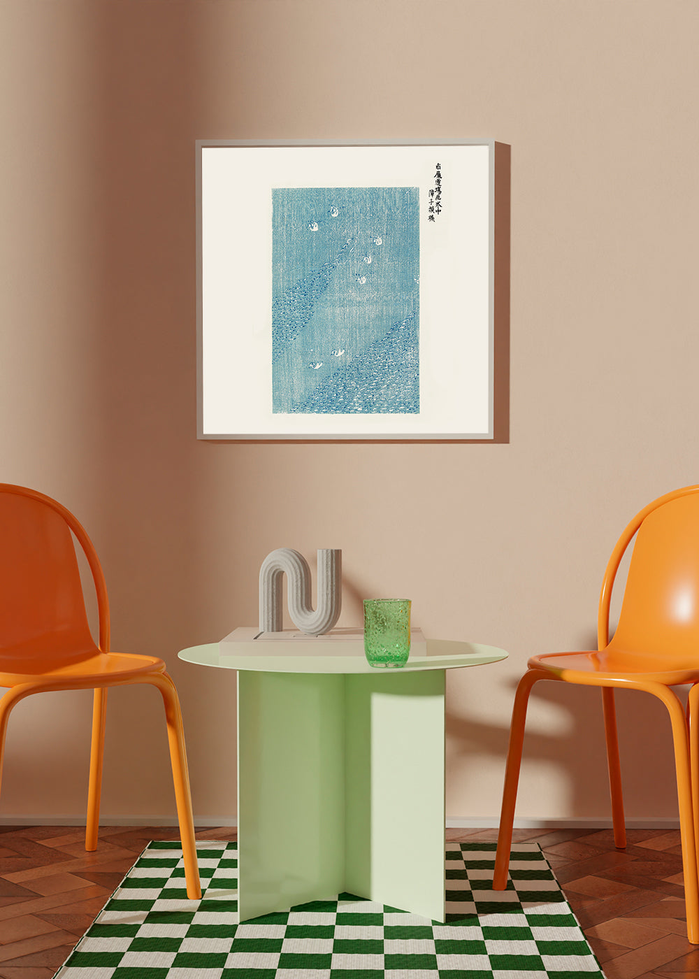 Scandinavian wall art Blue Birds Woodblock print from Yatsuo no tsubaki by Taguchi Tomoki - Square