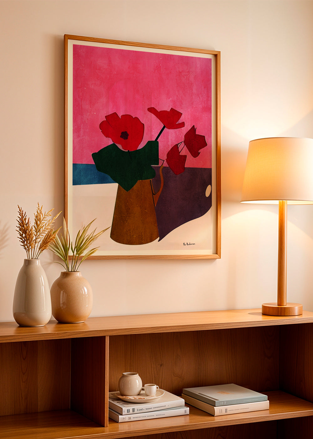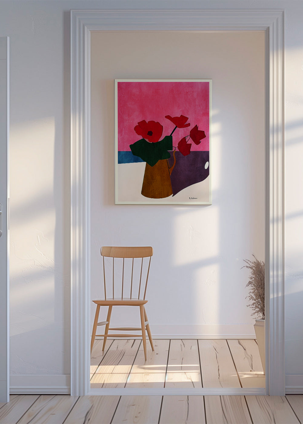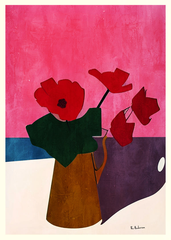 A design from our vintage wall art collection, an original by Bo Anderson, with red, and perfect to hang vertically. A retro poster you can pair with other vintage-style prints for an original touch in the home. The print your wall has been looking for.
