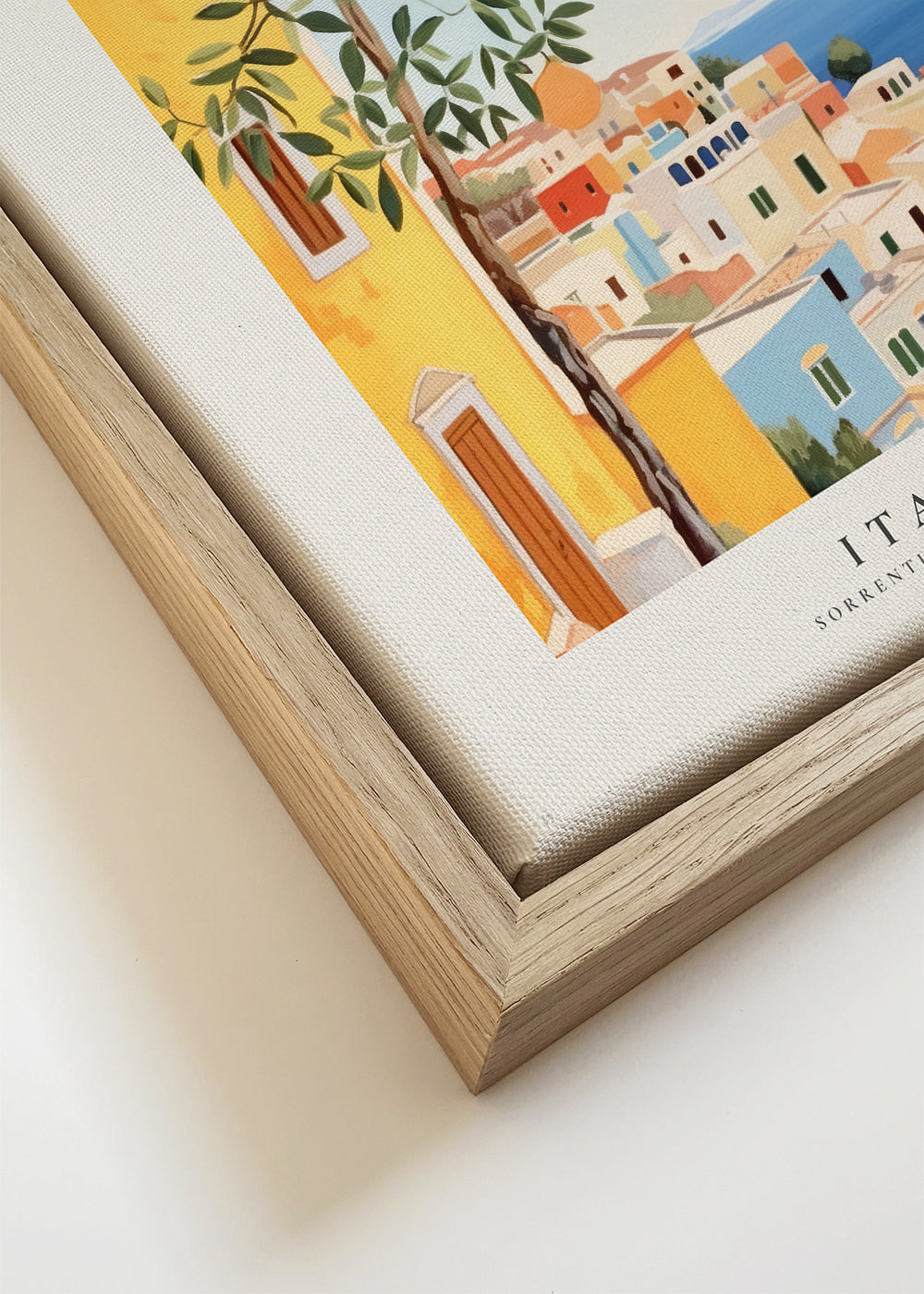 The wooden frames up to 20x28 in (included) have a width of 0.6 in and a depth of 1.2 in, while in the larger ones the width is 0.8 in and a depth of 1.2 in.