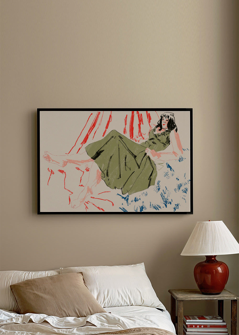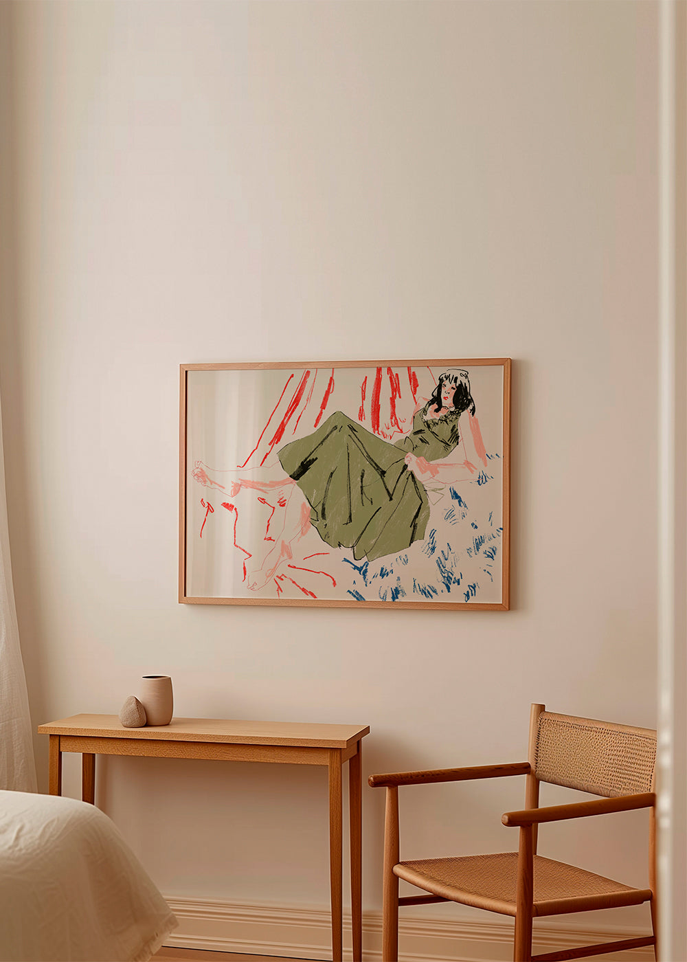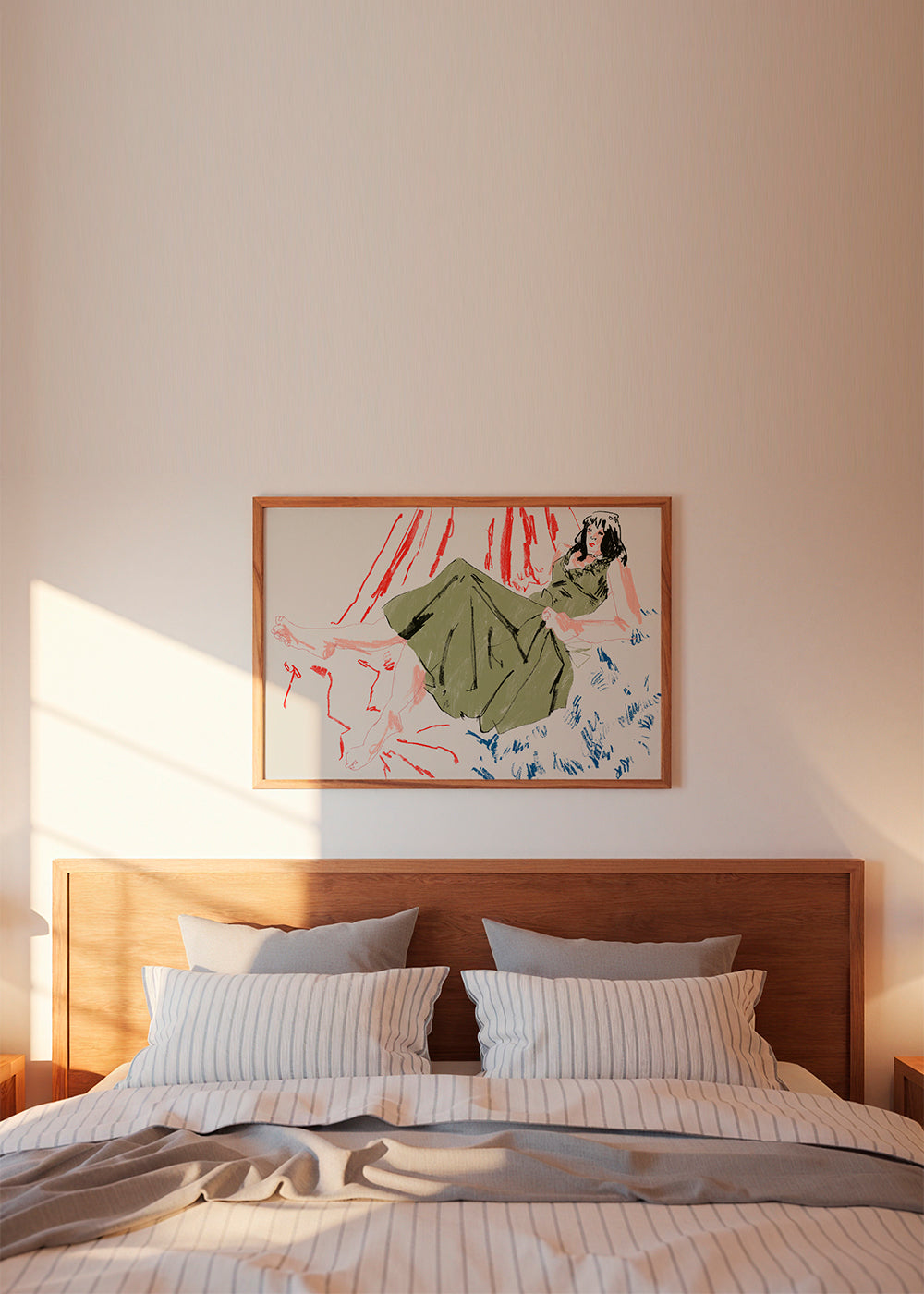 A print from the girls wall art category, by the artist 1x, with green, and perfect to hang horizontally. A perfect piece for spaces bursting with art and creativity. Our drawings are perfect for decorating empty or boring spaces. Let art flood your home.