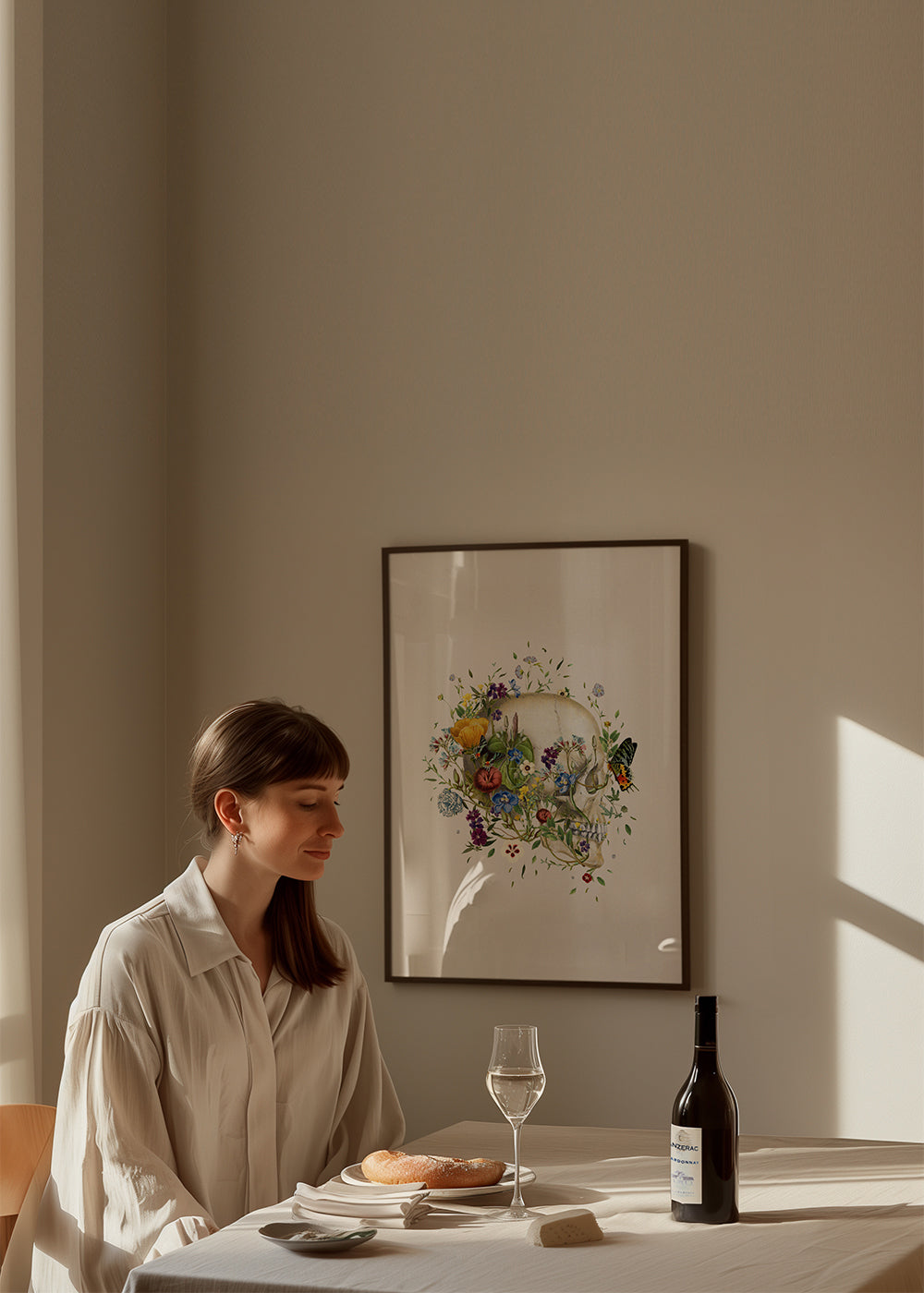 Scandinavian wall art Floral skull