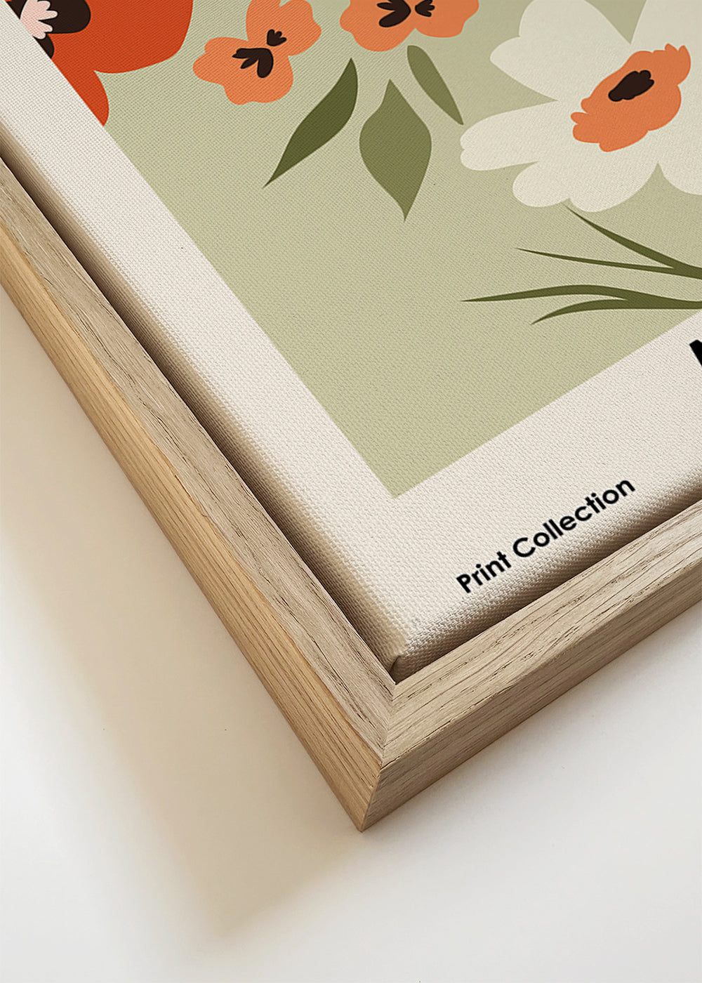 Each canvas is hand-stretched over a wooden frame. The depth is 3 cm for unframed canvases and 4 cm for framed canvases.