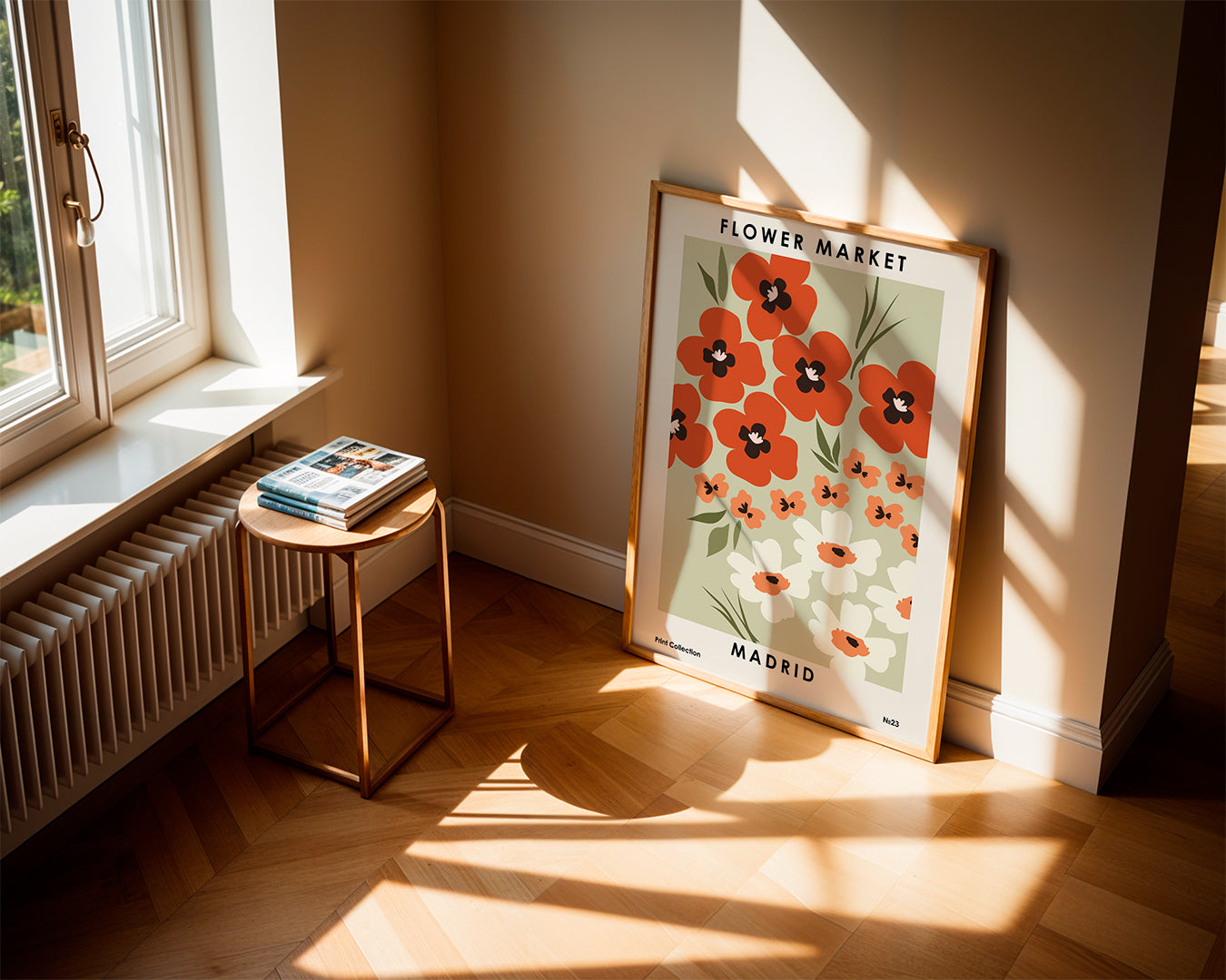 Beautiful poster from our selection of botanical prints and wall art, in tones of red, and to hang in vertical position. A perfect piece for spaces bursting with art and creativity. Our drawings are perfect for decorating empty or boring spaces. An empty wall is a canvas waiting to be painted.