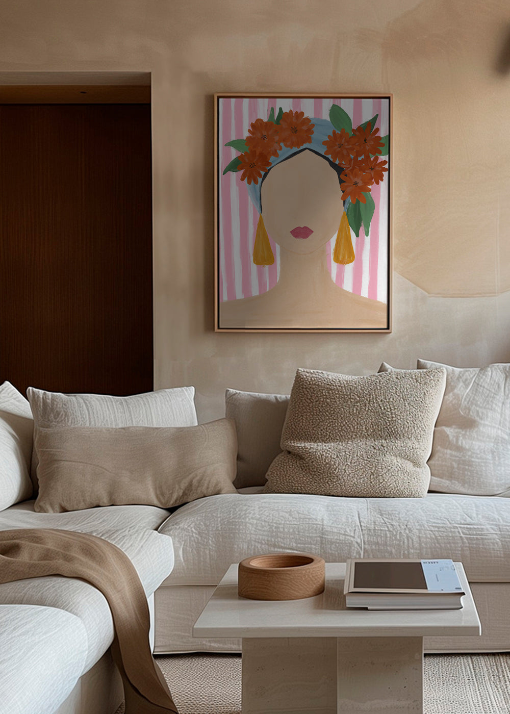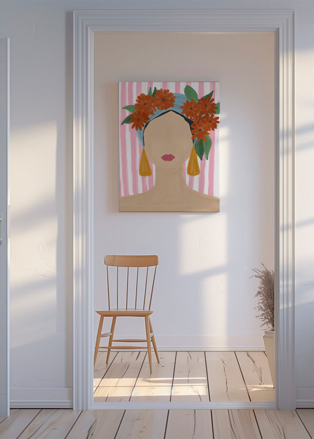 A print from our girls wall art series, an original by Essentially Nomadic, in tones of red, and in vertical position. Illustrated prints give your home decor a touch of originality. Fill your walls with art.