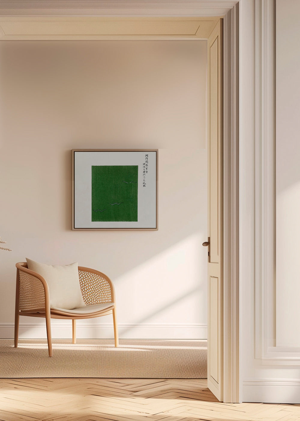 Scandinavian wall art Green Birds Woodblock print from Yatsuo no tsubaki by Taguchi Tomoki - Square