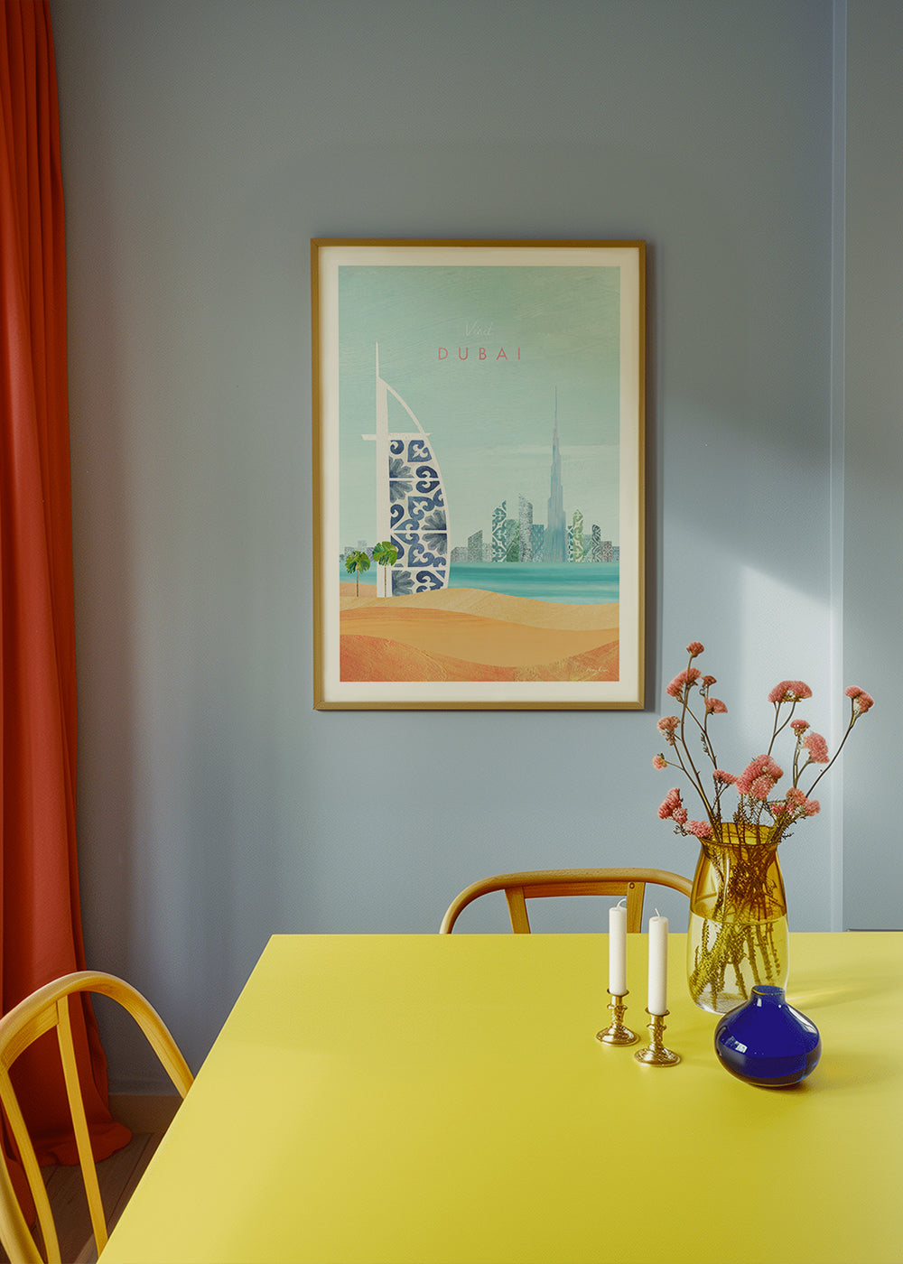 A design inspired by the collection of travel posters, from the collection of the artist Henry Rivers, with tones of blue, and to hang in vertical position. If you love wandering around discovering new parts of the world, this print is for you. A modern touch for your home.