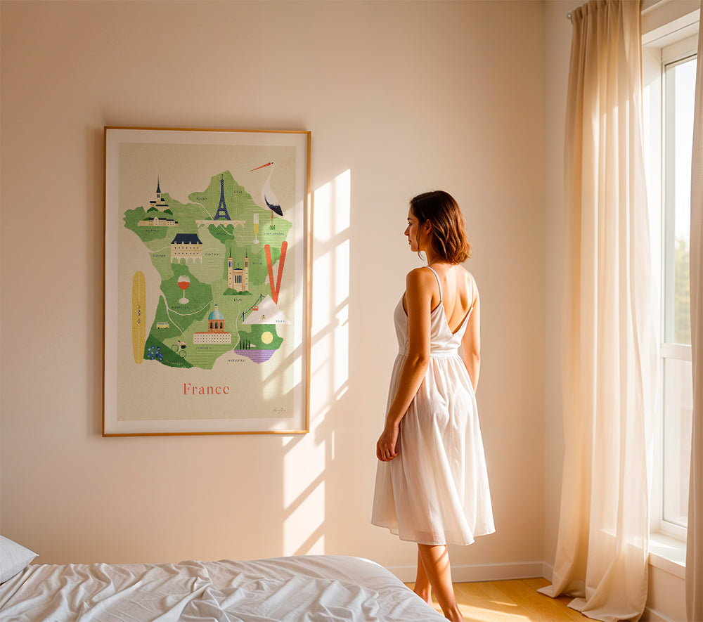 On our website, the sizes refer to the dimensions of the posters. If you combine our prints with our frames, the final size and weight will be as follows: