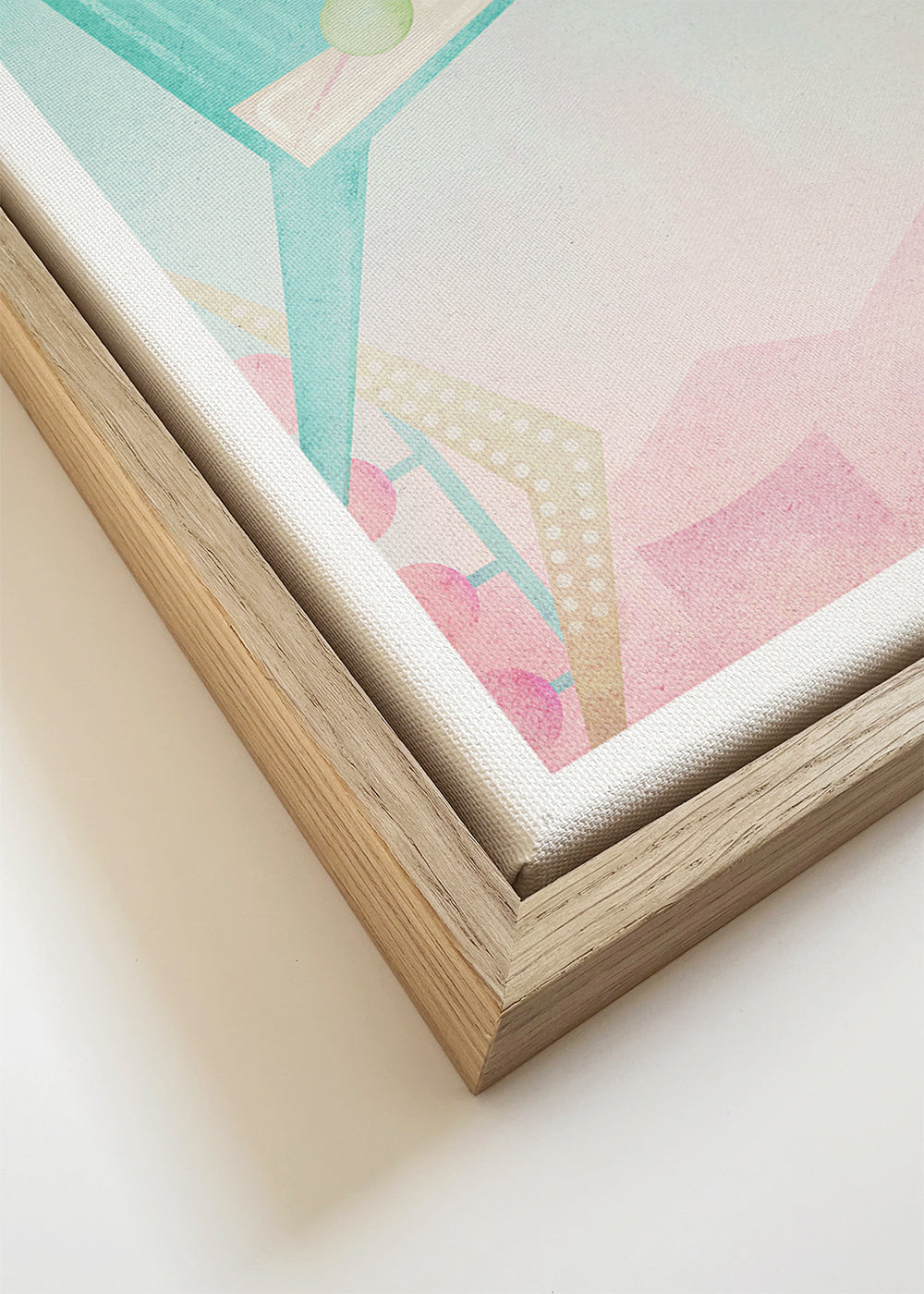We work with solid wood and aluminium frames. All framed artworks are shipped already assembled and ready to hang. The front protection is made of high-clarity acrylic glass.
