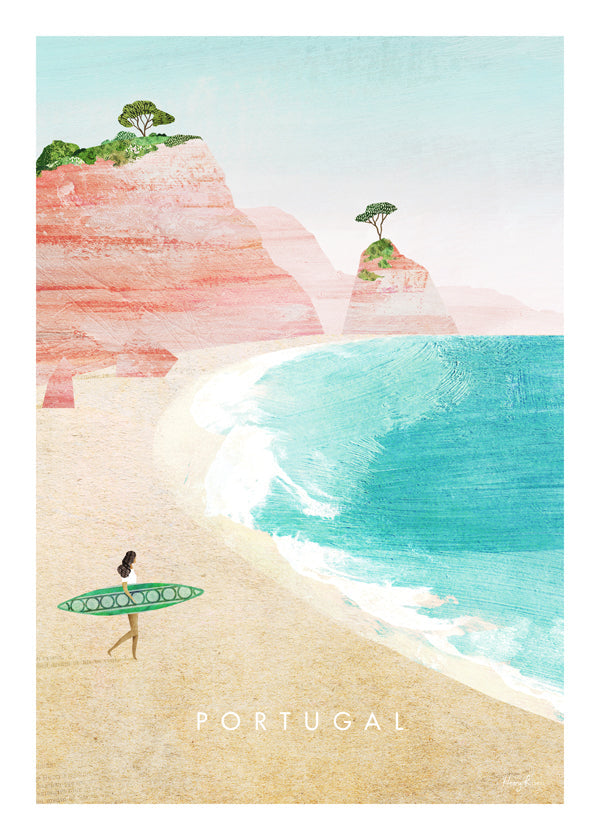 A print from our selection of travel posters, an original by Henry Rivers, with blue, and with vertical layout. A perfect piece for the eternal traveller. Pair it with our map and city prints. Give your decor an artistic touch.
