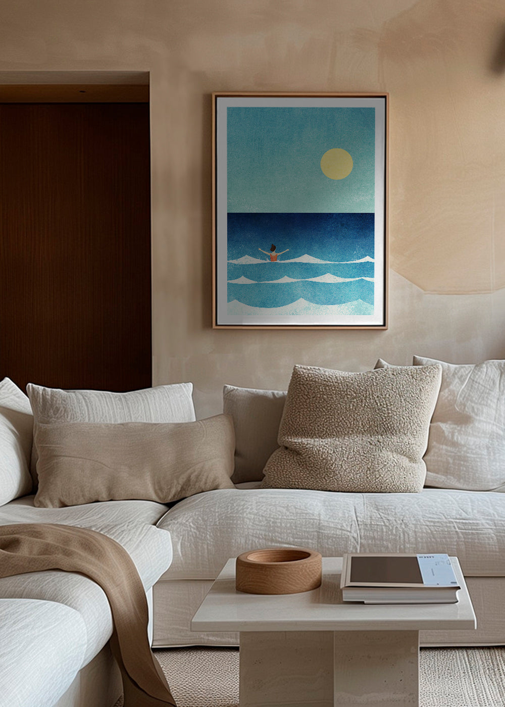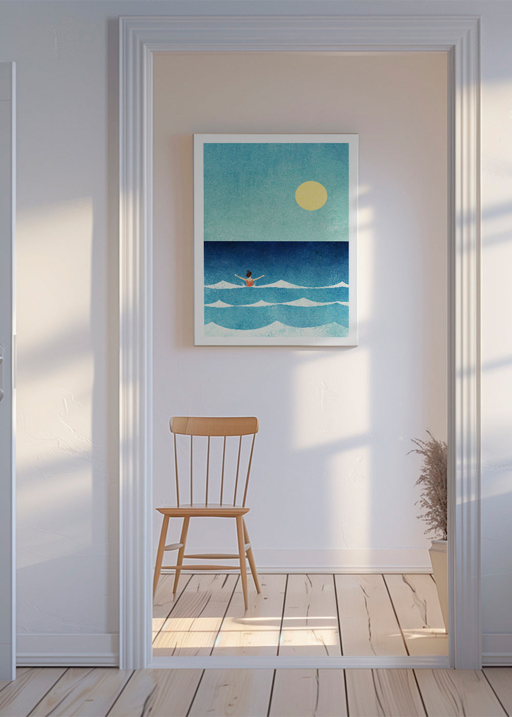 A print from our ocean wall art and prints series, made by Henry Rivers, with shades of blue, and vertical layout. Nature in all its splendour, landscape prints convey a sense of calm. Elegant walls for chic homes.