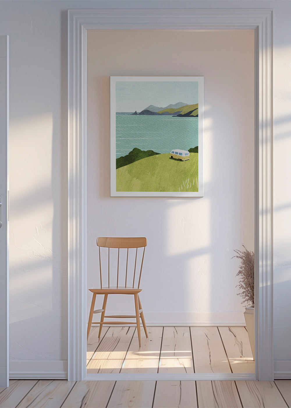 Print: premium 250 gsm art paper, ideal for framing or hanging with poster holders.