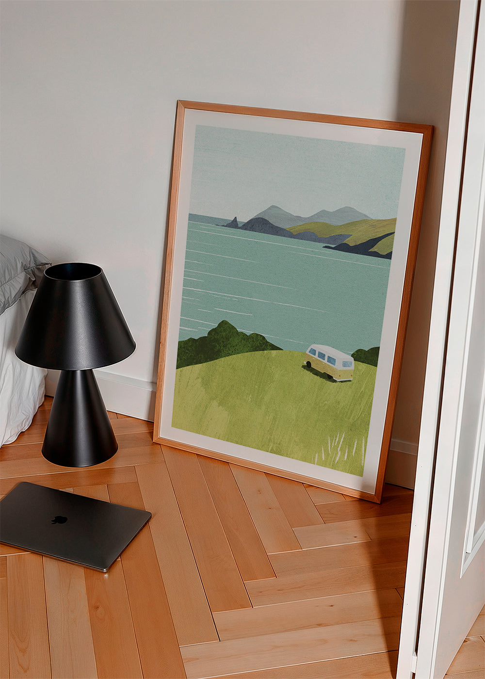 We work with solid wood and aluminium frames. All framed artworks are shipped already assembled and ready to hang. The front protection is made of high-clarity acrylic glass.