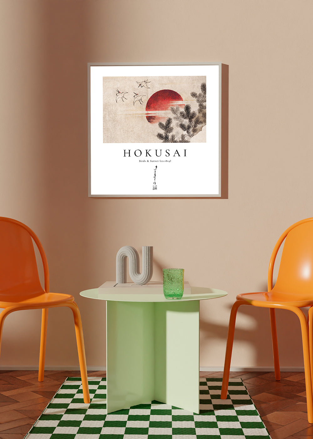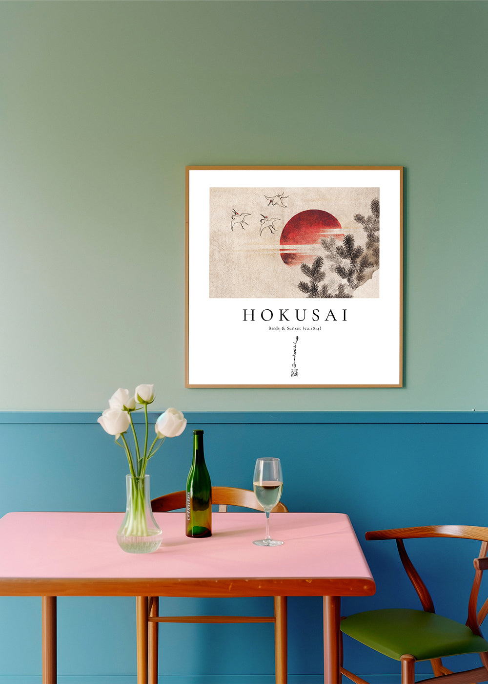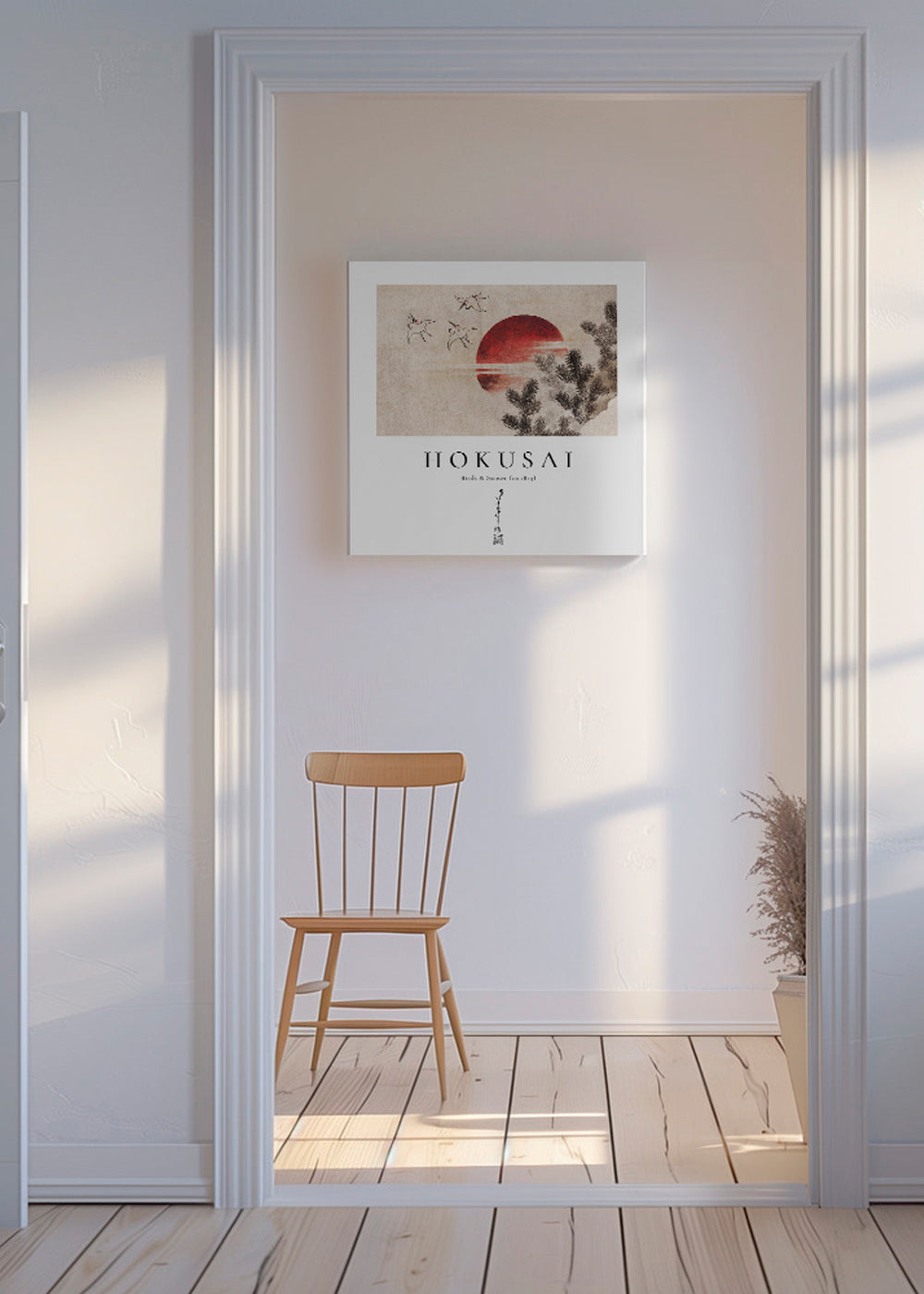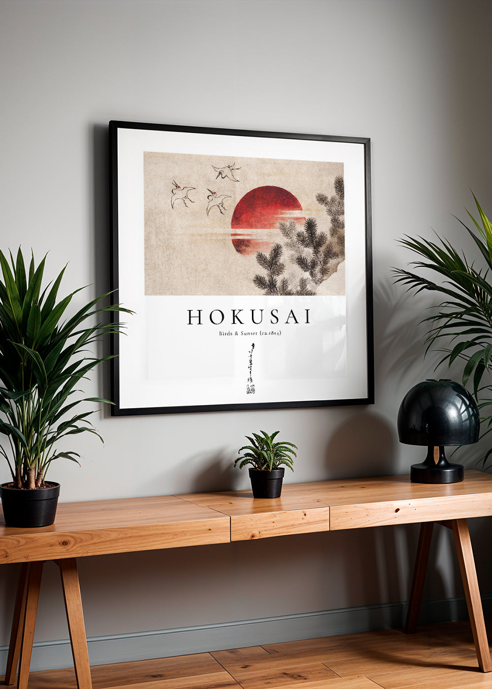 Scandinavian wall art Katsushika Hokusai birds and sunset from Album of Sketches - Square