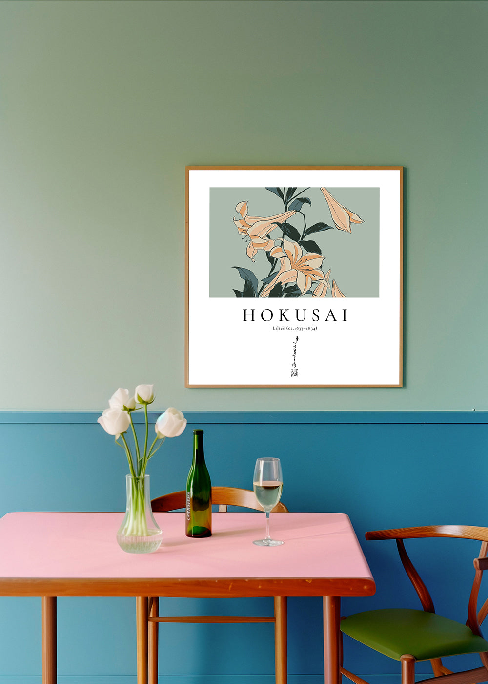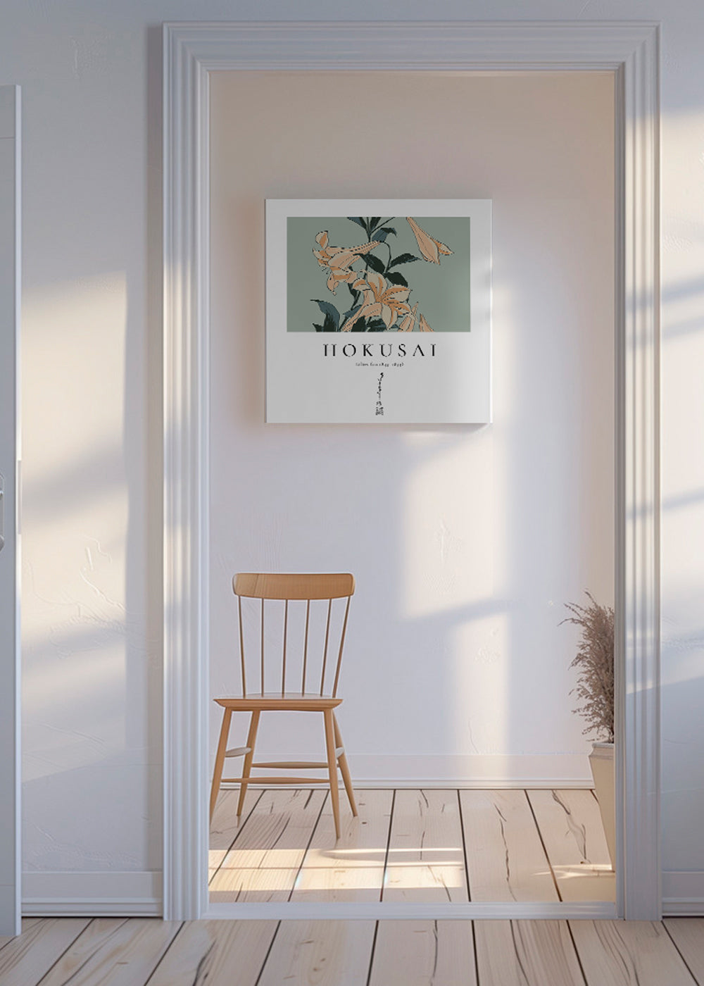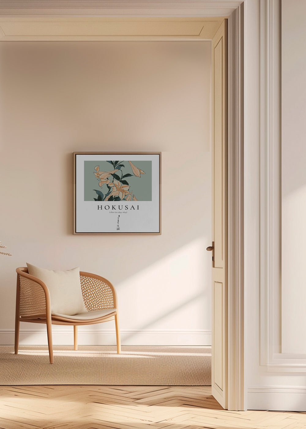 Scandinavian wall art lilies by Katsushika Hokusai - Square