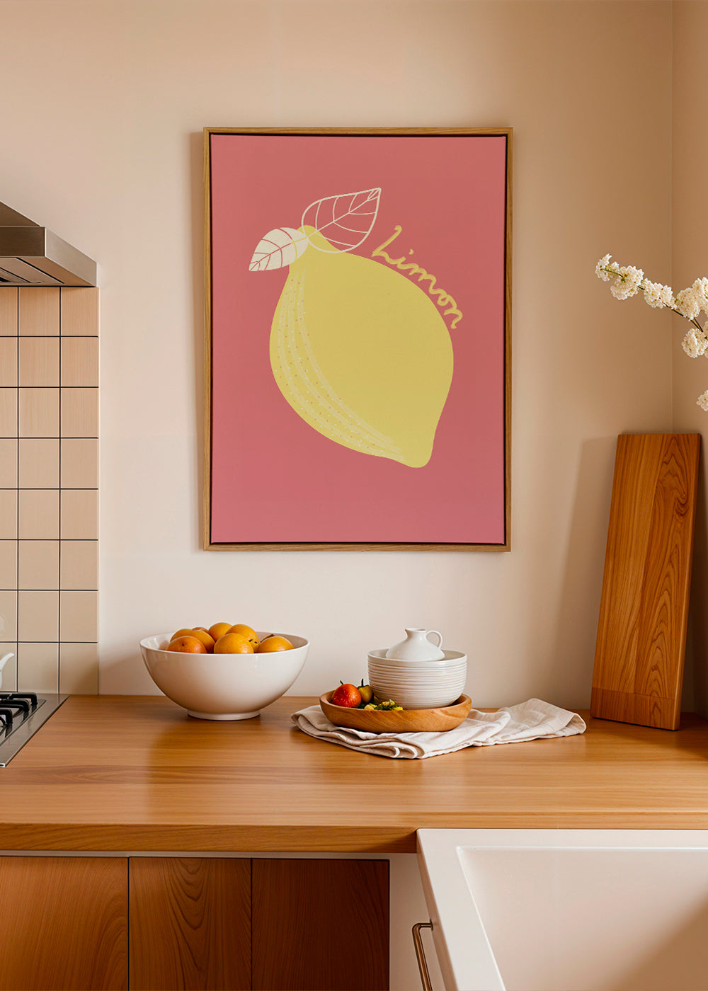 This piece from the fruit posters series, made by 1x, with yellow pigments, and vertical layout. Clean lines and Nordic tone, perfect for Scandinavian decoration. Give your home a new look.