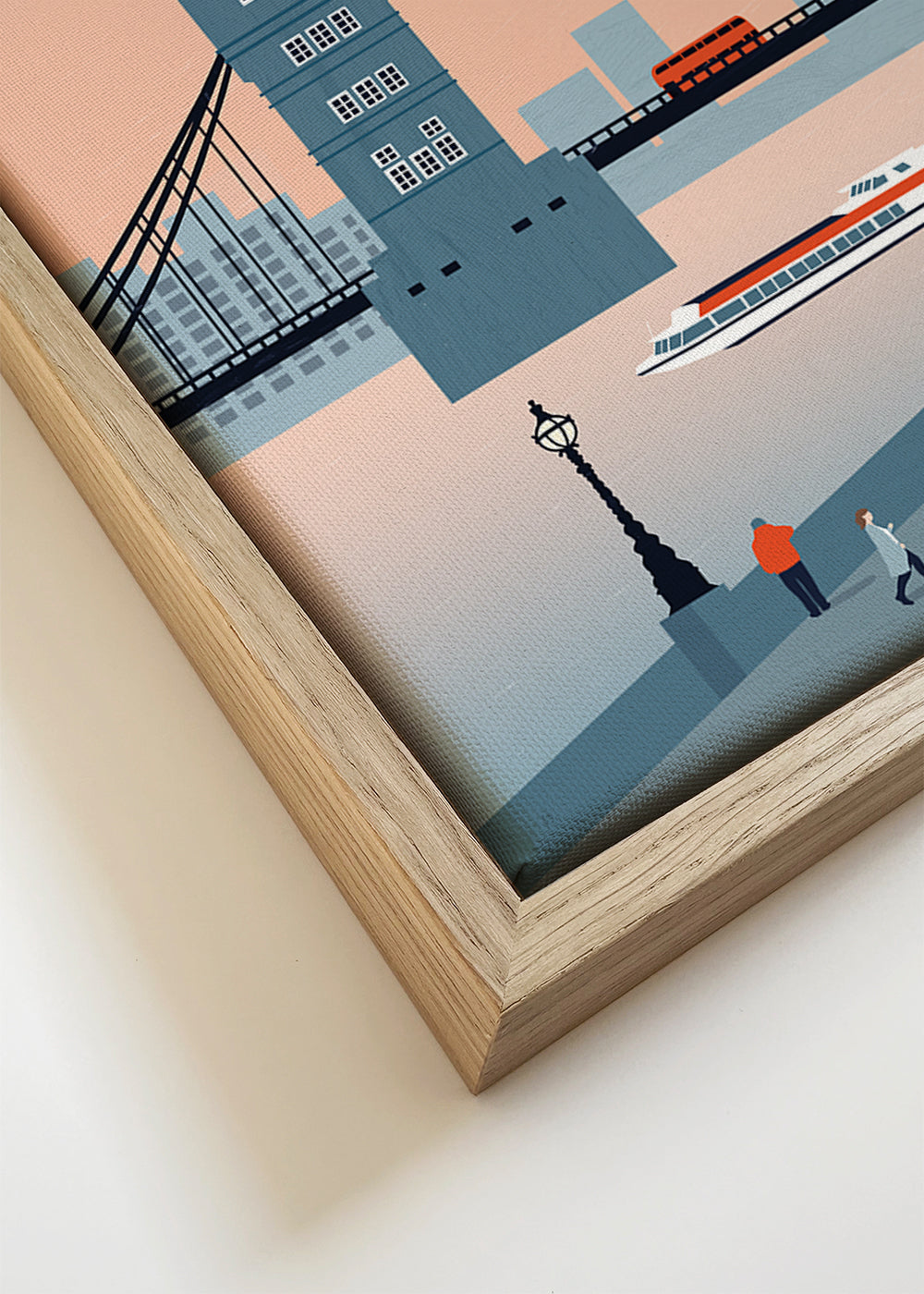We work with solid wood and aluminium frames. All framed artworks are shipped already assembled and ready to hang. The front protection is made of high-clarity acrylic glass.
