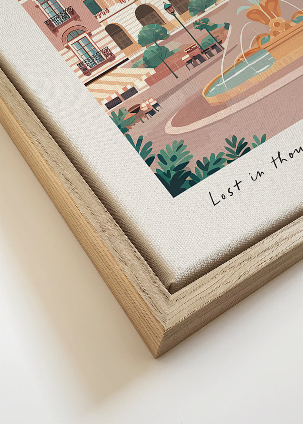 If you select the passepartout option, we will add the white matt board to the frame, and we will reduce the design of the work. For example, if you select a print size 20x28 in, with an oak colored frame and passepartout, we will reduce the design of the print to the previous size (16x20 in). In this way, it will adapt perfectly to the inside window of the passepartout.