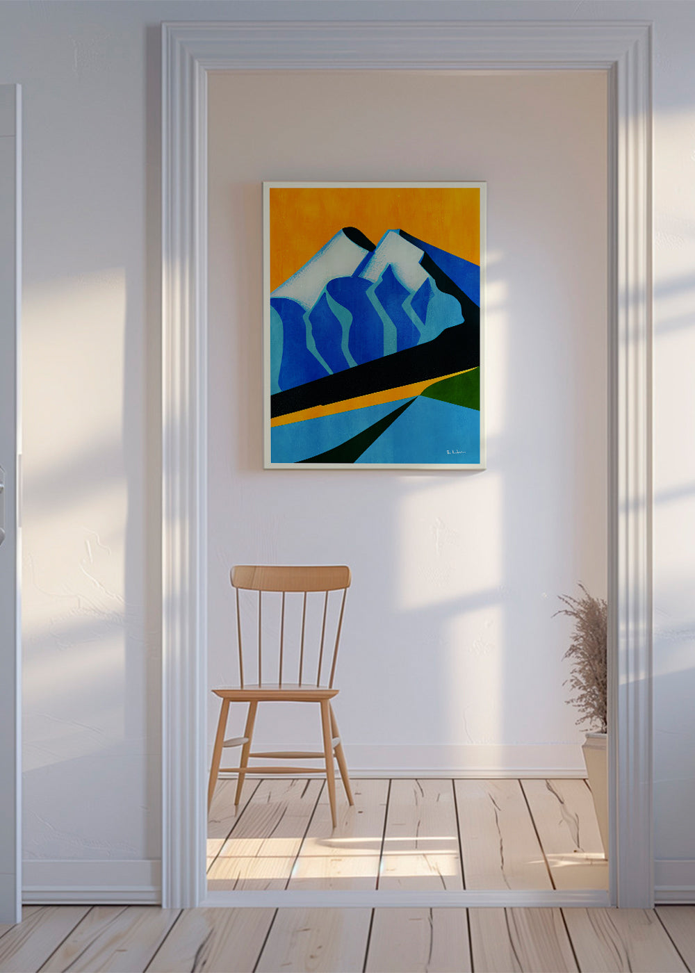 A design from our vintage wall art series, from the mind of Bo Anderson, with shades of blue, and in vertical position. A retro style that is perfect for a vintage look. Let art flood your home.