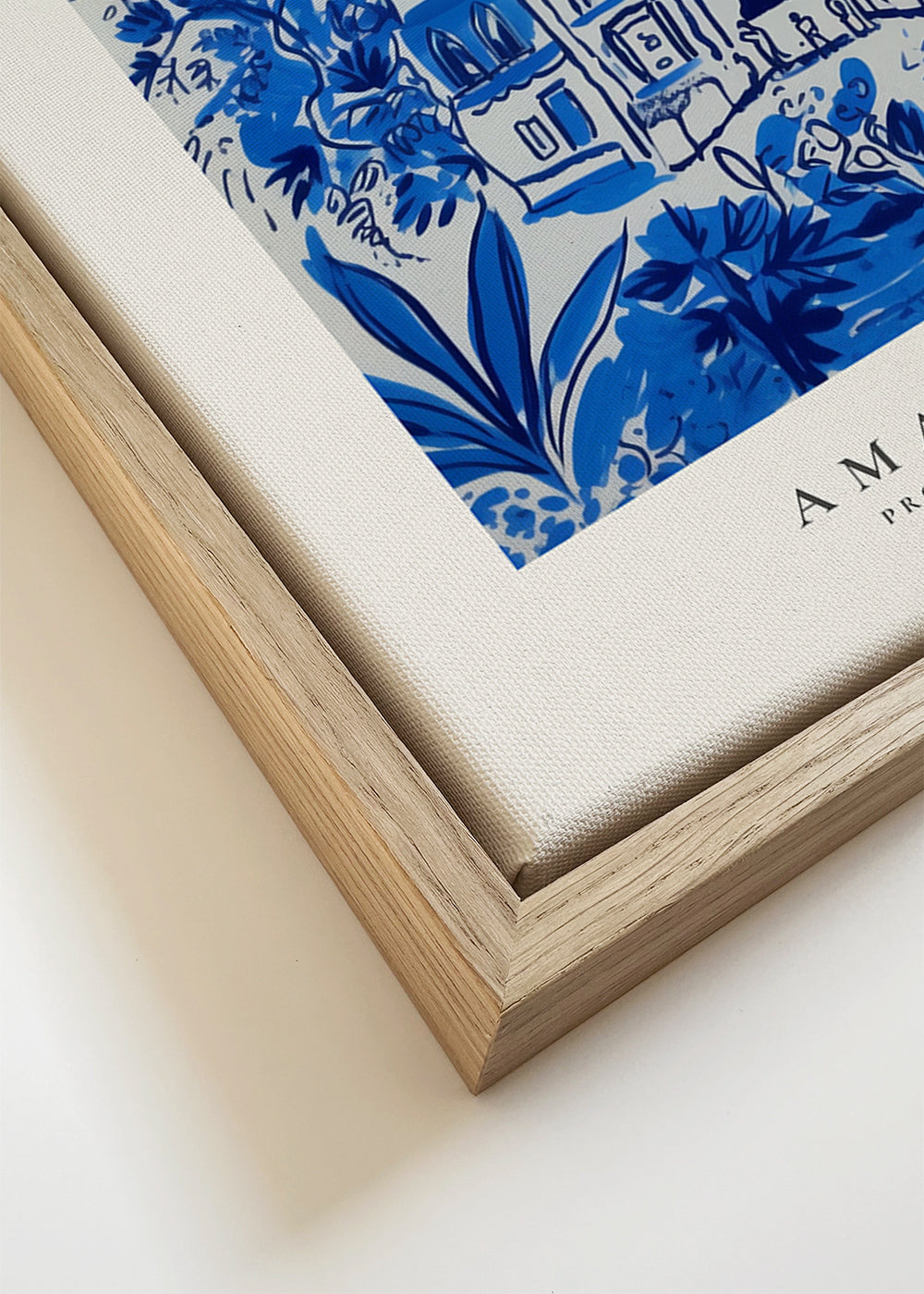 The wooden frames up to 20x28 in (included) have a width of 0.6 in and a depth of 1.2 in, while in the larger ones the width is 0.8 in and a depth of 1.2 in.