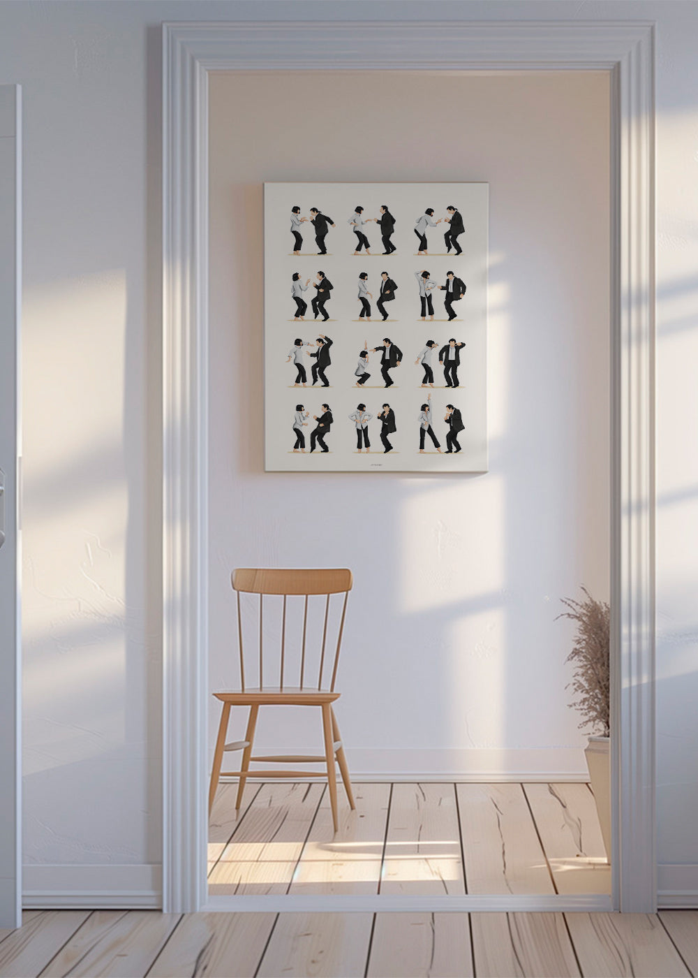 This print from our repertoire of dance posters, created by Draw me a song, with shades of black, and with vertical layout. Our minimalist prints and posters bring a touch of modernism to any part of the home. There are no ugly or beautiful walls, just empty or full ones.