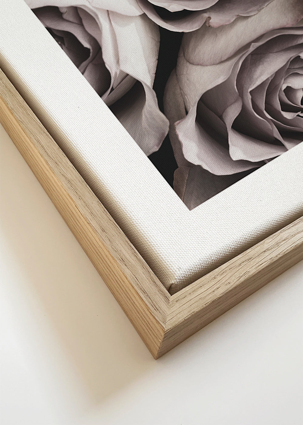If you select the passepartout option, we will add the white matt board to the frame, and we will reduce the design of the work. For example, if you select a print size 20x28 in, with an oak colored frame and passepartout, we will reduce the design of the print to the previous size (16x20 in). In this way, it will adapt perfectly to the inside window of the passepartout.