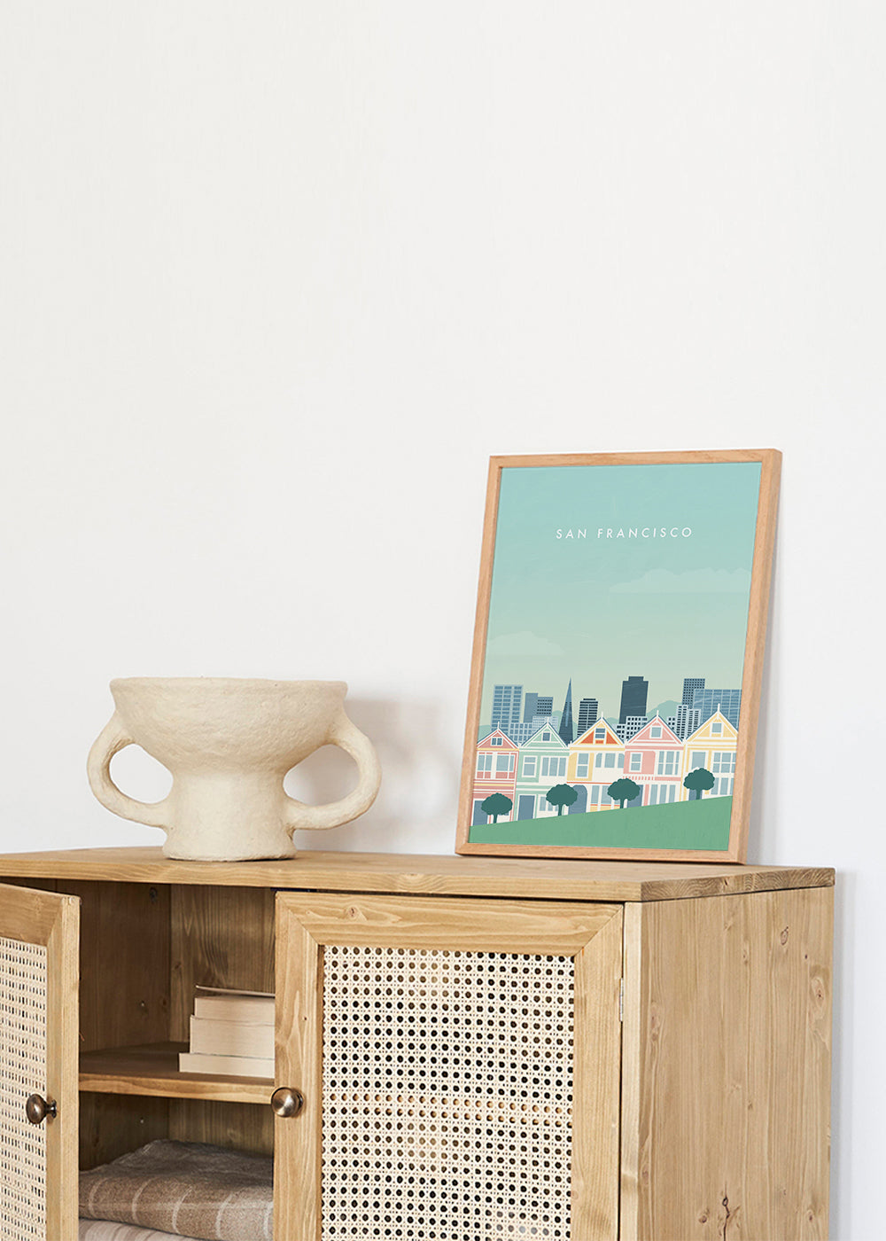 This print from the travel posters series, from the Katinka Reinke collection, with tones of blue, and facing vertically. Our map and city prints are perfect for those who love cities and architecture. Elegant walls for chic homes.