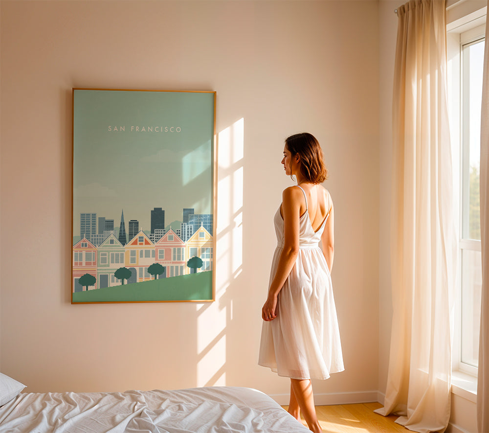Canvas: printed on hand-stretched fabric for a more volumetric and artistic look, available with or without a frame.