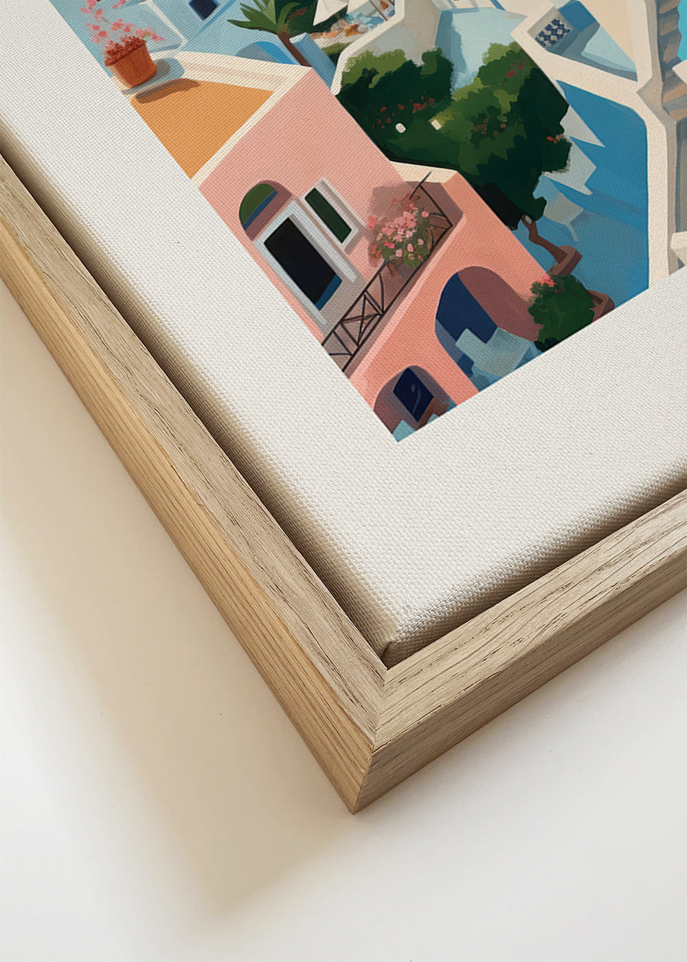 Each canvas is hand-stretched over a wooden frame. The depth is 3 cm for unframed canvases and 4 cm for framed canvases.