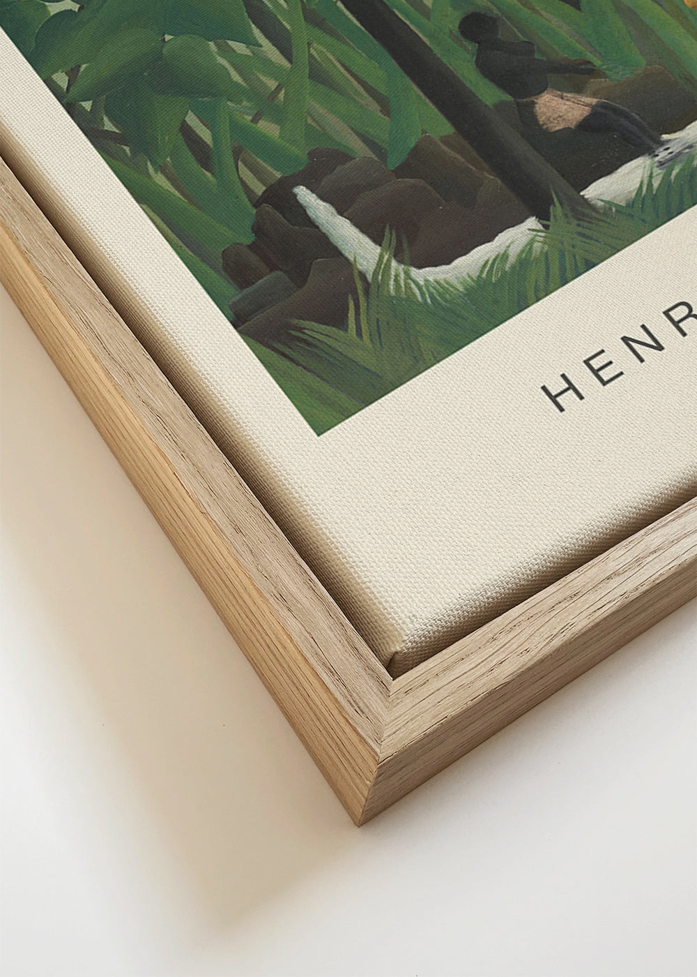The wooden frames up to 20x28 in (included) have a width of 0.6 in and a depth of 1.2 in, while in the larger ones the width is 0.8 in and a depth of 1.2 in.