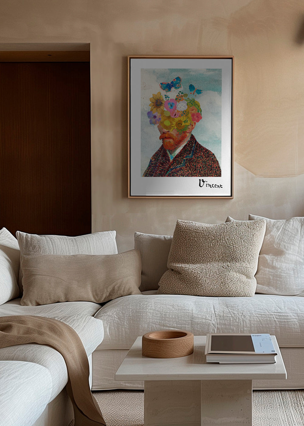 Scandinavian wall art Vincent van Gogh inspired self-portrait & flower remixed