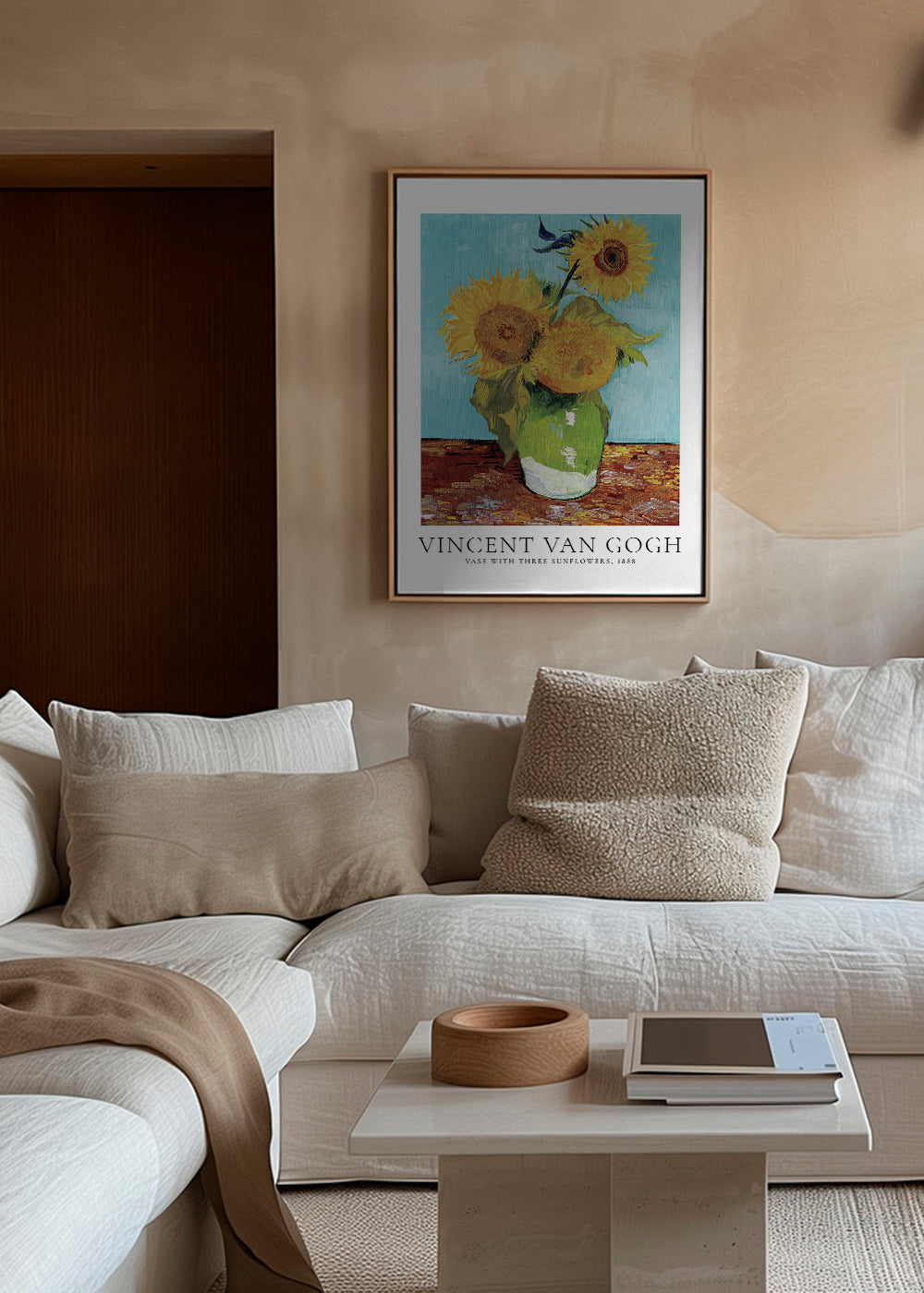 Scandinavian wall art Vincent Van Gogh vase with three sunflowers