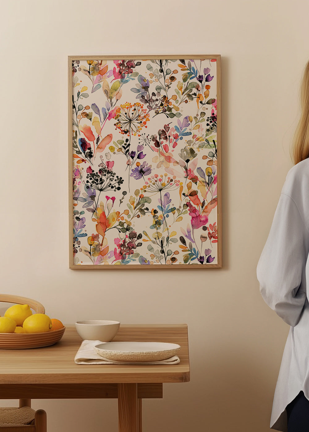 Beautiful poster from our selection of pattern wall art, by creative artist Ninola Design, in tones of multicolor, and facing vertically. Minimalist art is a calming, harmonious influence on your home decor. Create your favourite spot.