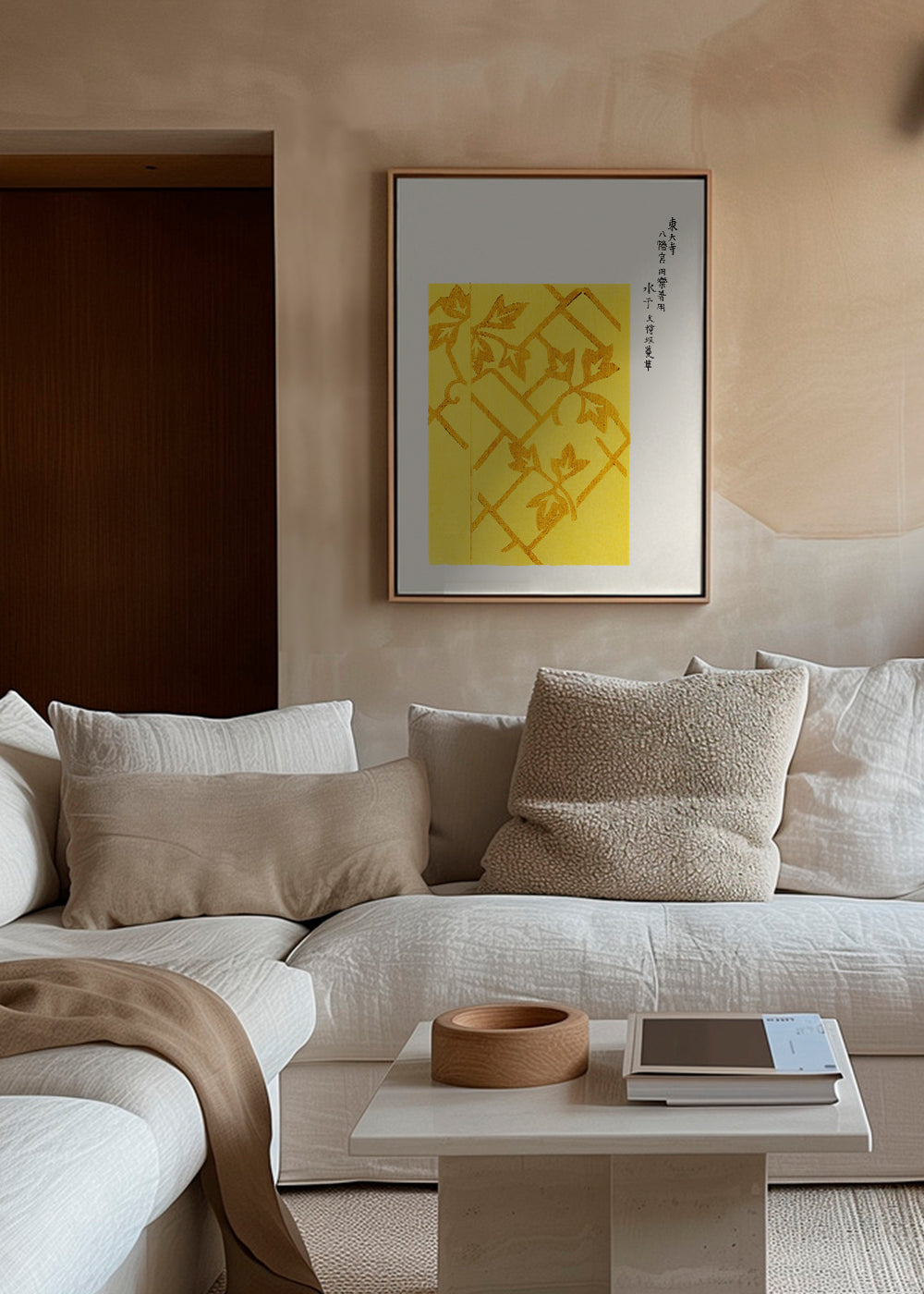 Scandinavian wall art Yellow Woodblock print from Yatsuo no tsubaki by Taguchi Tomoki