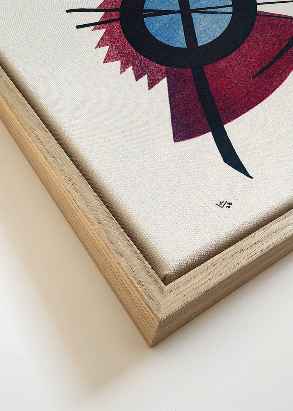 The wooden frames up to 20x28 in (included) have a width of 0.6 in and a depth of 1.2 in, while in the larger ones the width is 0.8 in and a depth of 1.2 in.