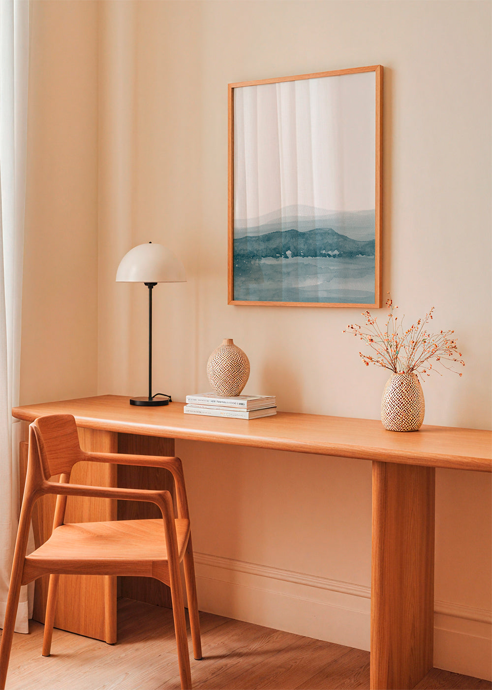 We work with solid wood and aluminium frames. All framed artworks are shipped already assembled and ready to hang. The front protection is made of high-clarity acrylic glass.