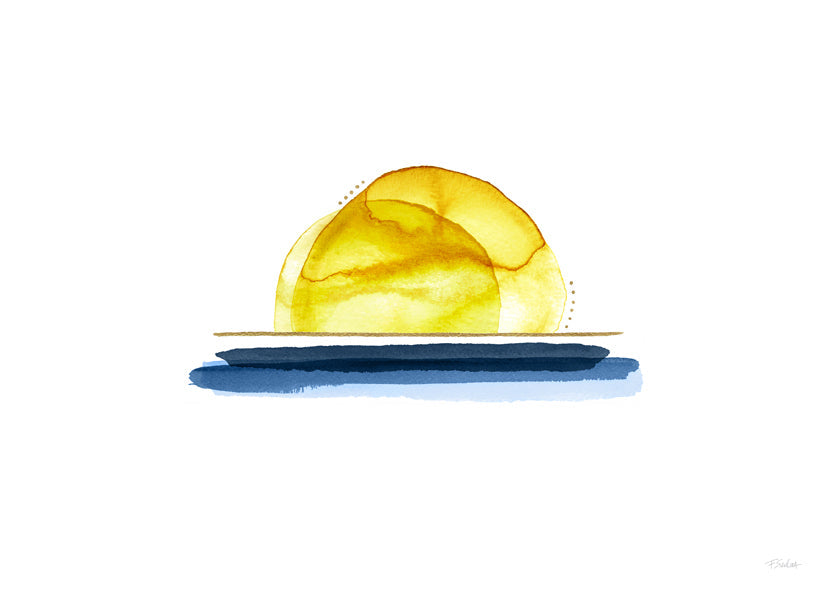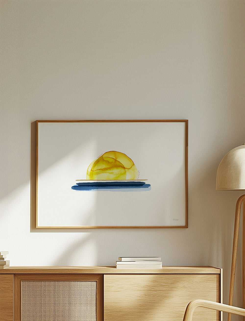 A piece from the geometric wall art and prints category, by creative artist Fabiana Silveira, with blue pigments, and with horizontal layout. The abstract, geometric shapes help create a casual, creative setting. The difference is in the details.
