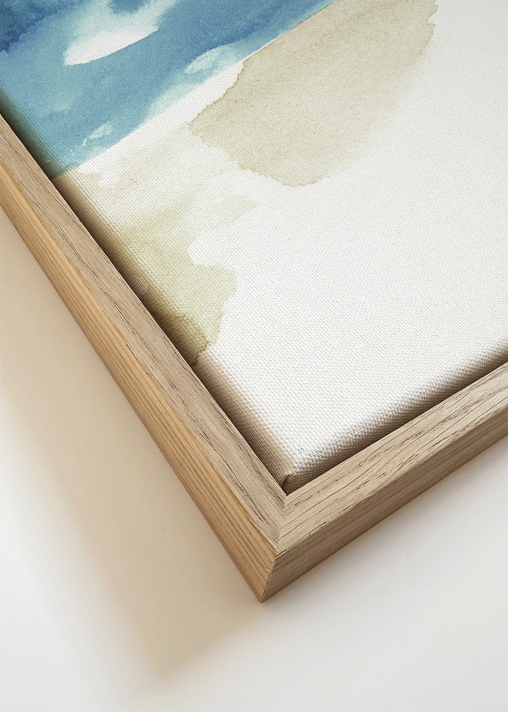 The wooden frames up to 20x28 in (included) have a width of 0.6 in and a depth of 1.2 in, while in the larger ones the width is 0.8 in and a depth of 1.2 in.