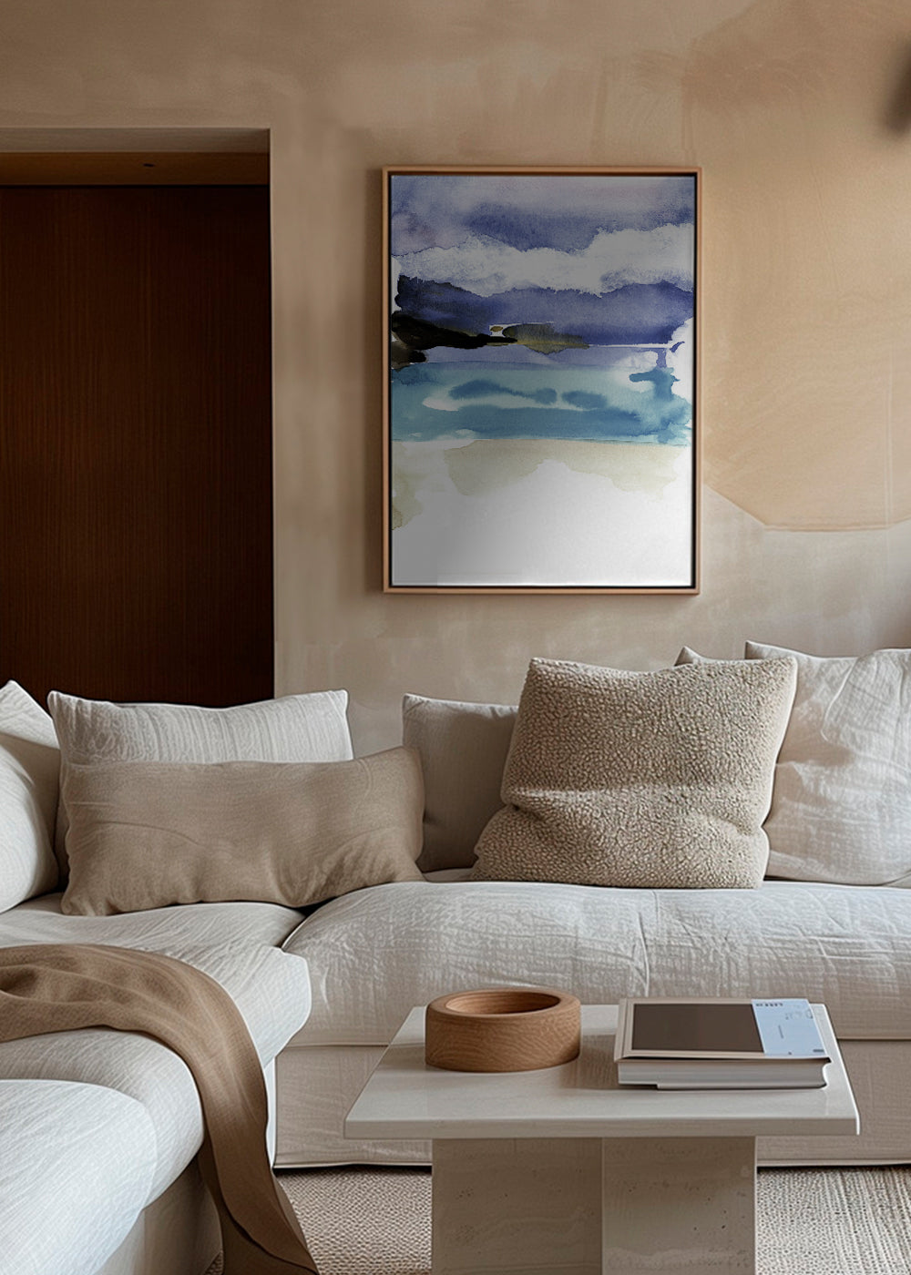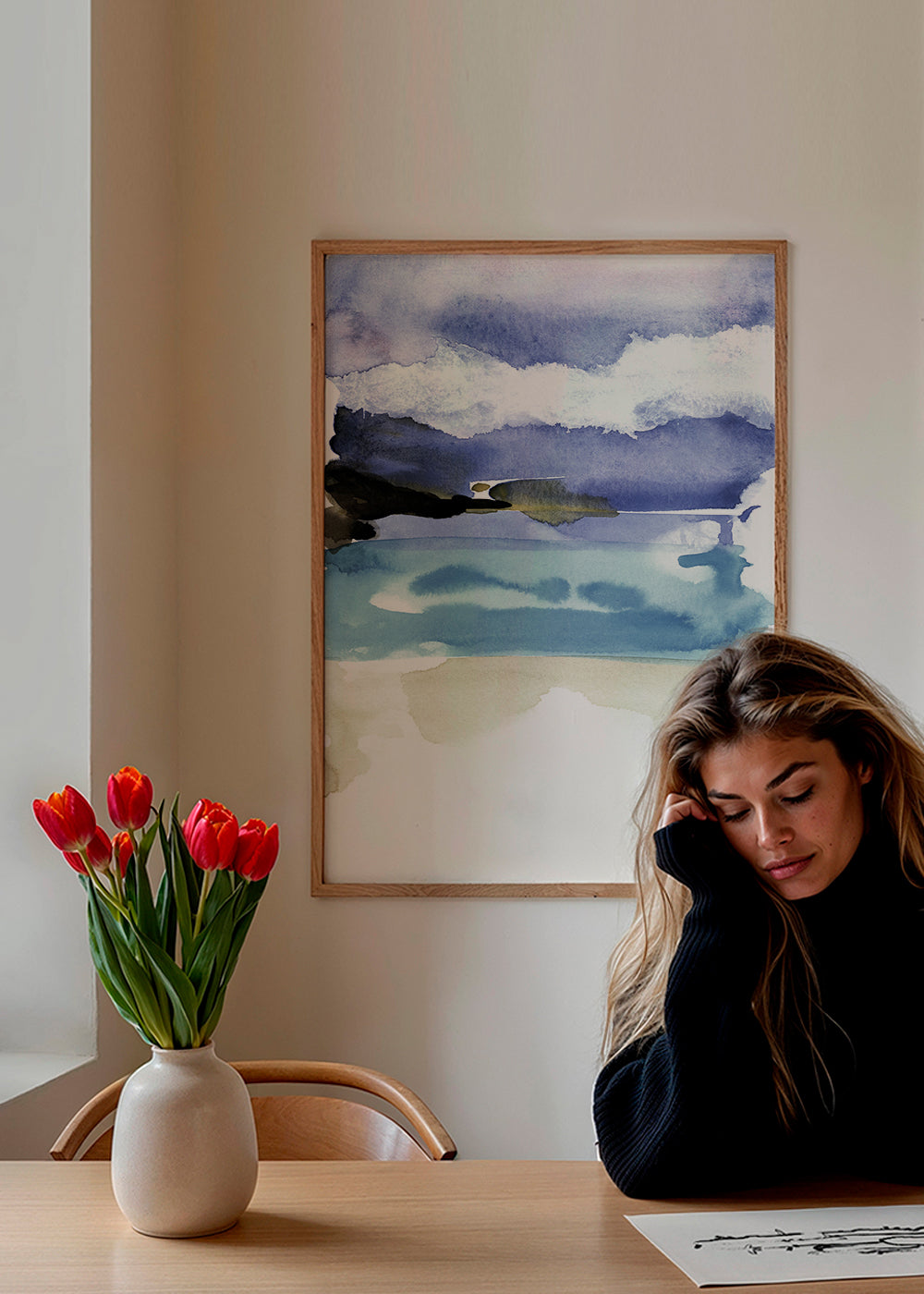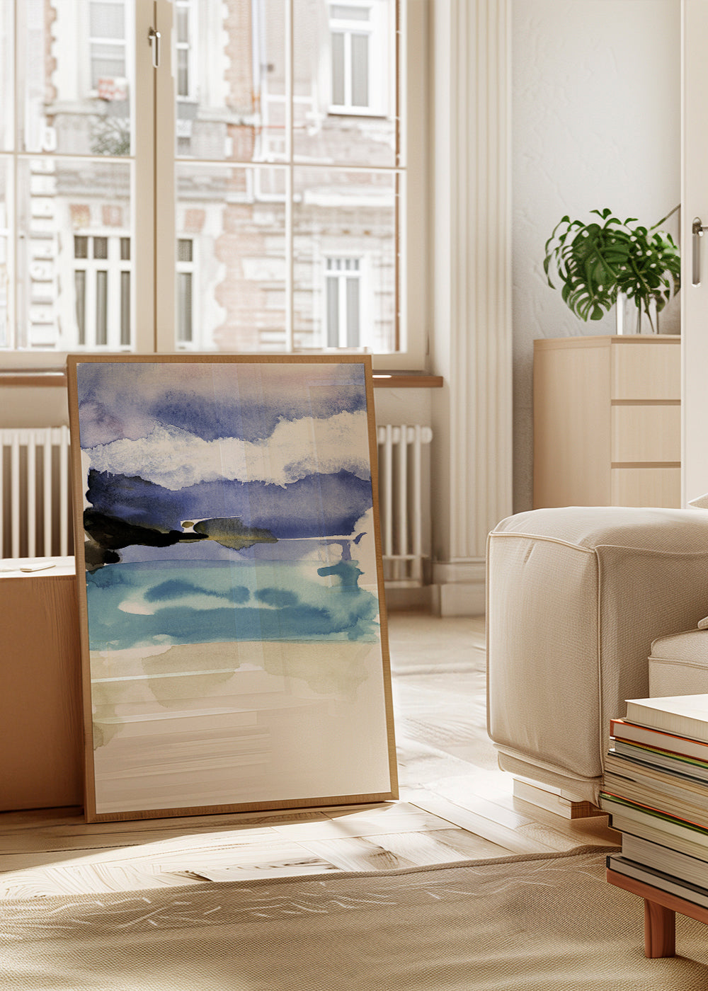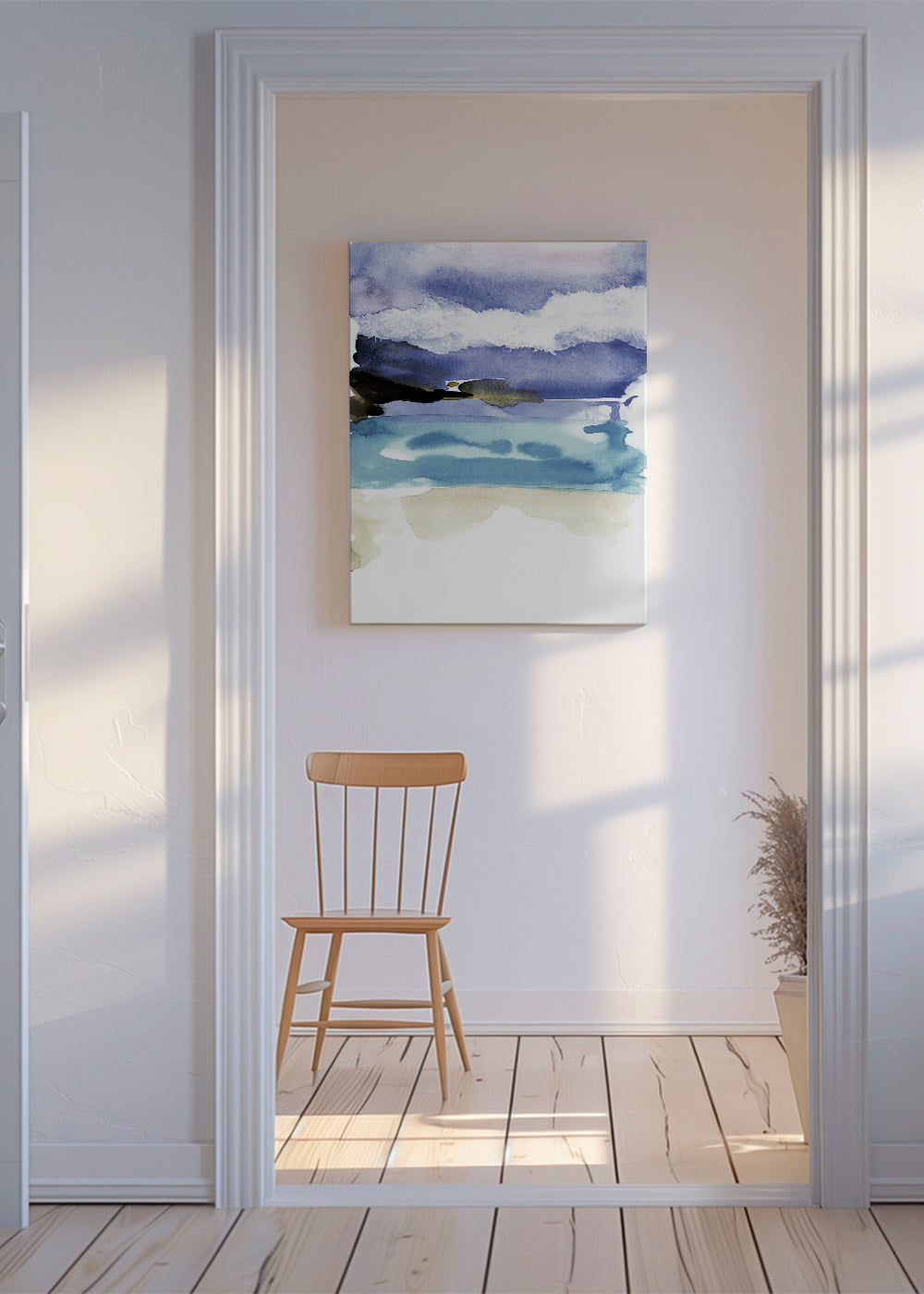 Beautiful piece from our beach wall art collection, created by Mercedes Lopez Charro, with tones of blue, and with vertical layout. A beautiful landscape perfect for pairing with other nature prints. Give your home a new look.
