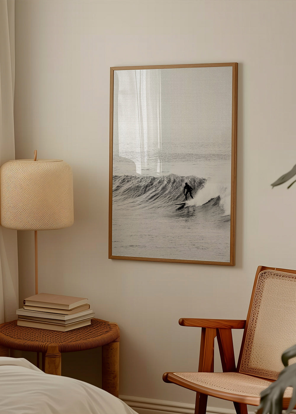 This poster from the surf posters and wall art collection, by creative artist Gal Design, with tones of black and white, and with vertical layout. Landscape prints are spectacular; pair them with texts and phrases to create cool wall compositions. Elegant walls for chic homes.