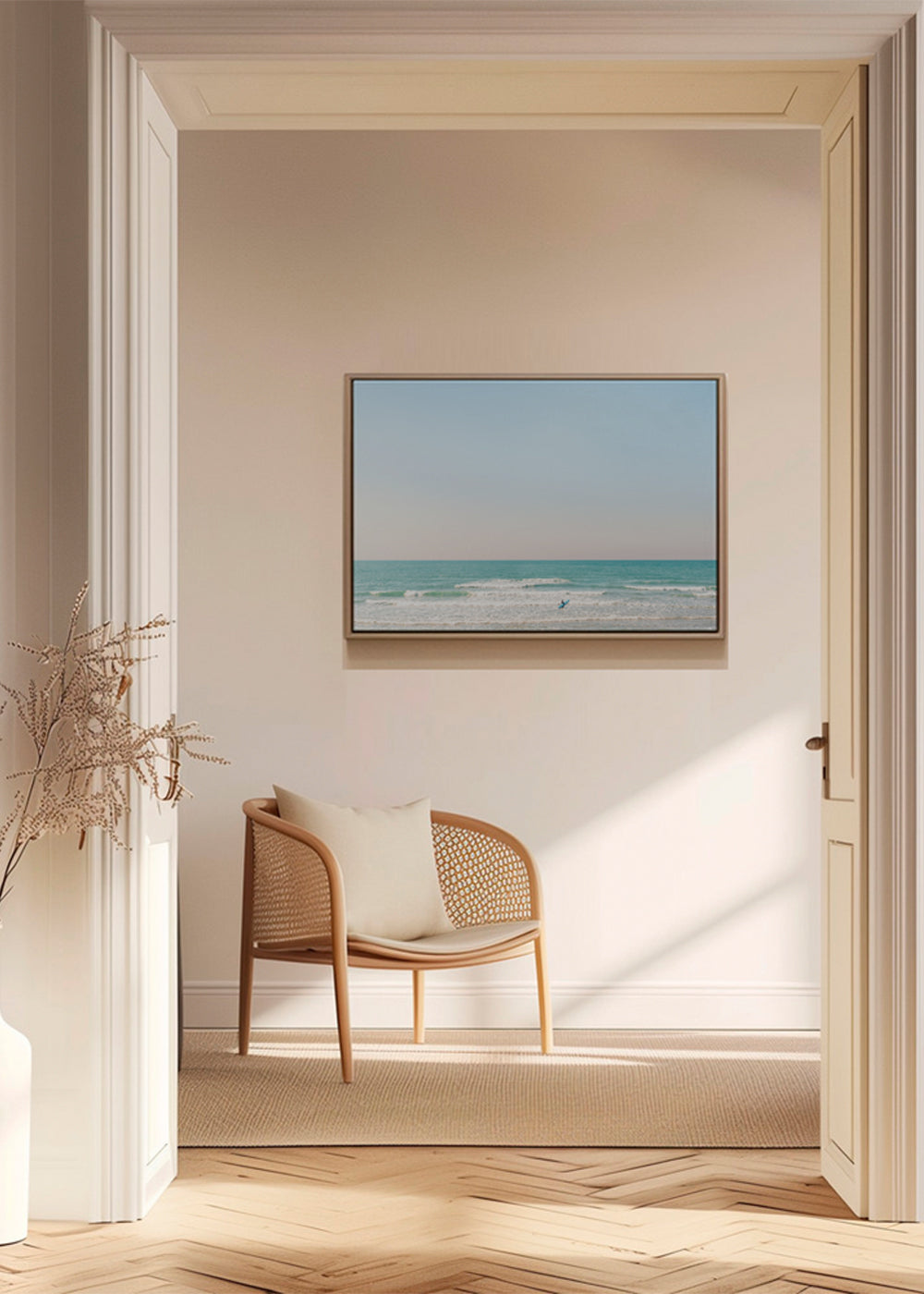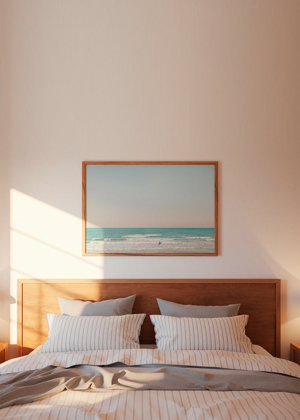 This print inspired by the collection of beach wall art, an original by Cordula Schaefer, in tones of blue, and to hang in horizontal position. Nature in all its splendour, landscape prints convey a sense of calm. Create your favourite spot.