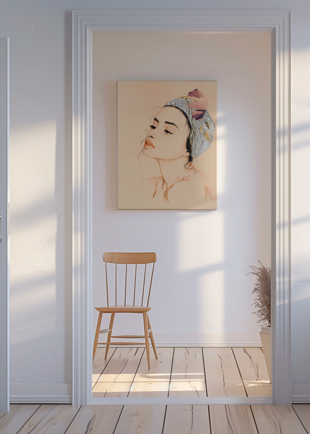 Each canvas is hand-stretched over a wooden frame. The depth is 3 cm for unframed canvases and 4 cm for framed canvases.