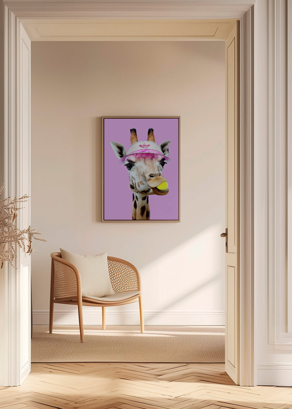 Beautiful print in the style of our tennis wall art, created by Jonas Loose, with tones of pink, and facing vertically. Animal prints let you show your wild side through your wall decoration. Give your home a new look.