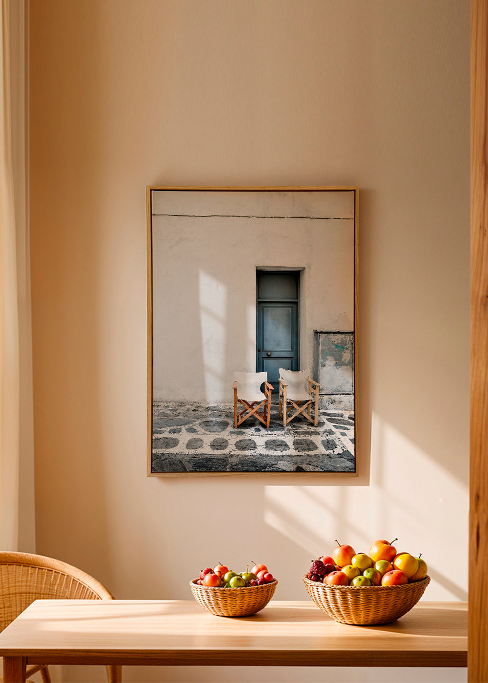 We work with solid wood and aluminium frames. All framed artworks are shipped already assembled and ready to hang. The front protection is made of high-clarity acrylic glass.