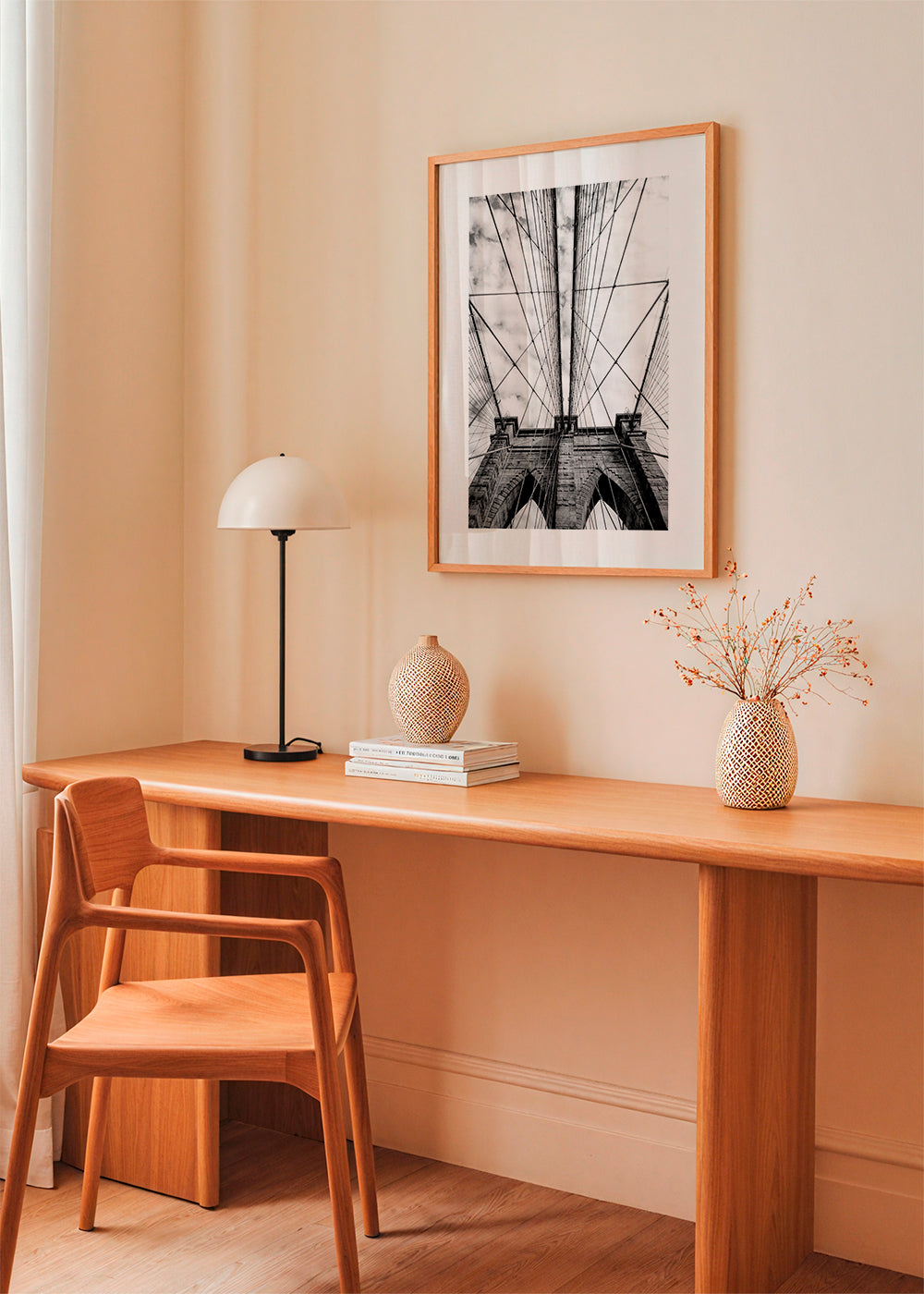 We work with solid wood and aluminium frames. All framed artworks are shipped already assembled and ready to hang. The front protection is made of high-clarity acrylic glass.
